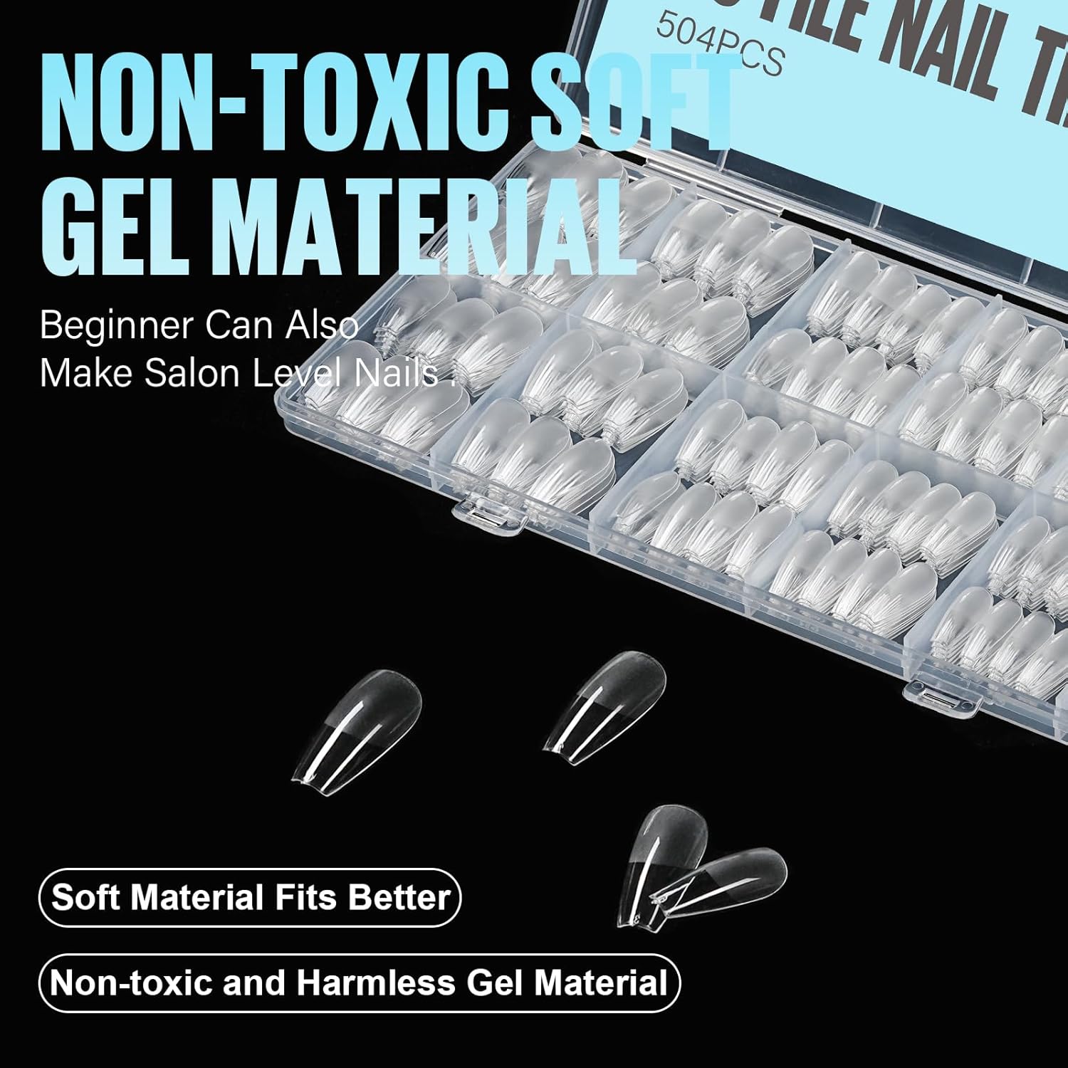 TOMICCA Medium Coffin Nail Tips, 504Pcs Half Matte Soft Acrylic Nail Tips, 12 Sizes Acrylic Pre-Shaped Nails, Full Cover False Nails for Extension Nail