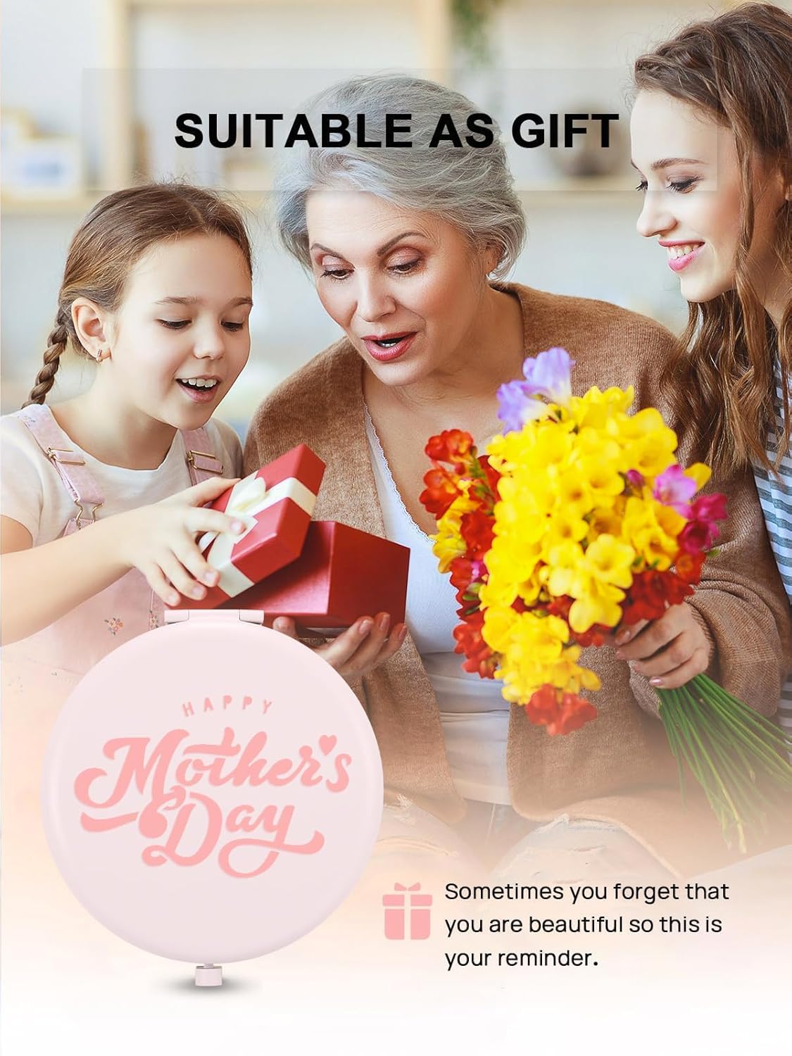 Compact Mirror Bulk, Set of 2 Double-Sided 1X/2X Magnifying Purse Pocket Makeup Mirrors(Round, Pink Marshmallow)