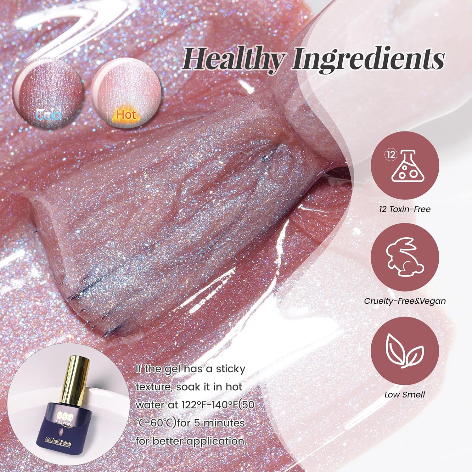YTD Likomey Pearl Thread Color Changing Gel Nail Polish,15ml Nude Pink To Rose Pink Shell Mermaid Drawing Pearlescent Glitter Mood Temperature Change Colors,Fall Winter Thermal Manicure UV Gel,WB423