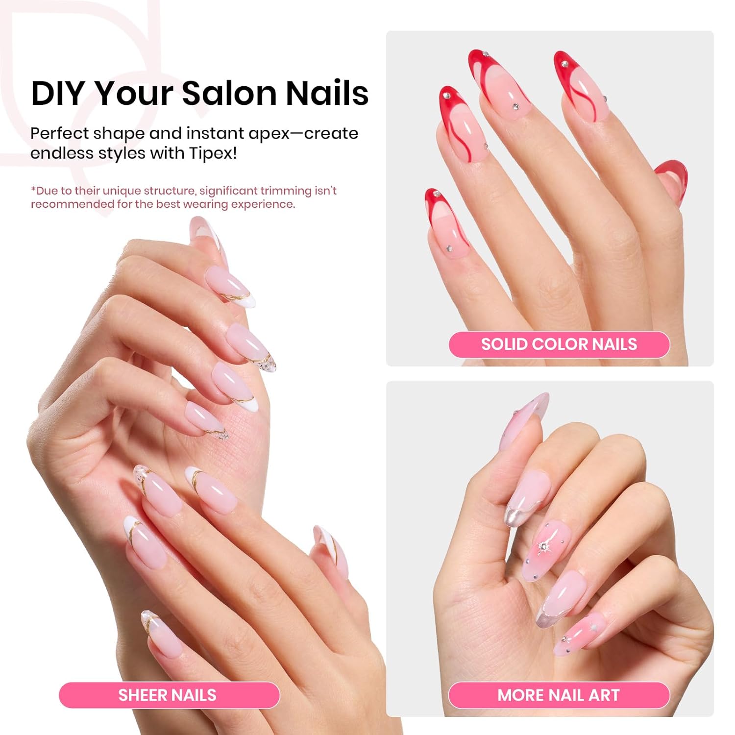 • All-in-One Nail Extension Kit:The Beetles Tipex Kit includes 224 pre-shaped tips, solid UV nail glue (20g), a smart mini UV lamp, and a nail file. Skip the builder gel mess—this kit offers an easier, faster, and cleaner way to achieve salon-quality extensions at home.