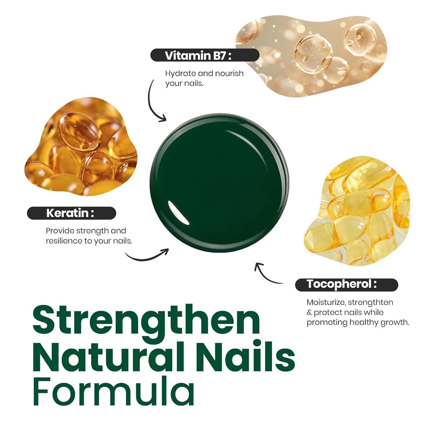 • Healthy and Harmless: Dark green nail polish is formulated with natural and harmless ingredients, low odor, can enhance nail thickness and hardness, and speed up nail recovery.