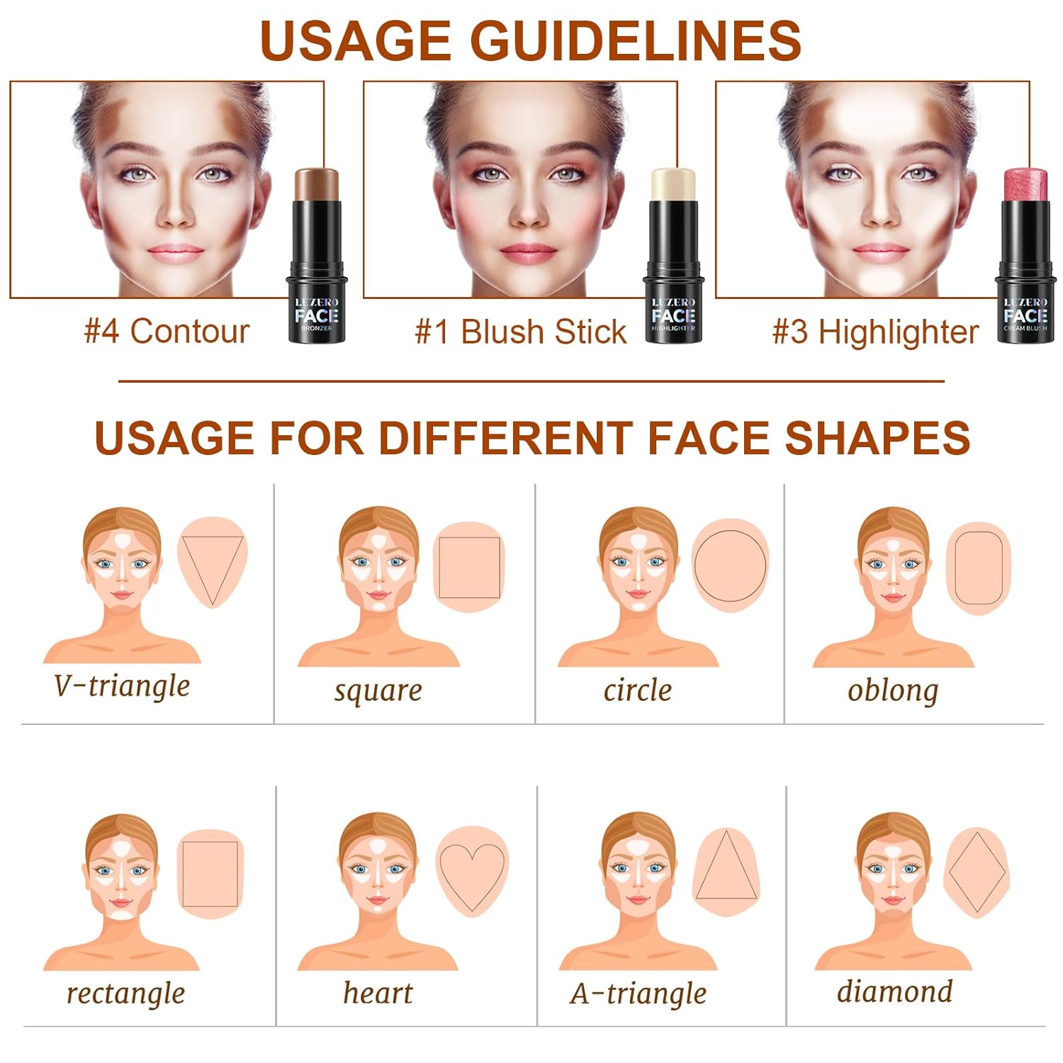 - HOW TO USE : After applying your care foundation, use the highlighter stick, contouring stick and blush stick to gently apply to your forehead, cheeks, jawline and nose, then use a soft makeup brush to smooth out until it blends into your skin for a natural, perfect matte finish look.