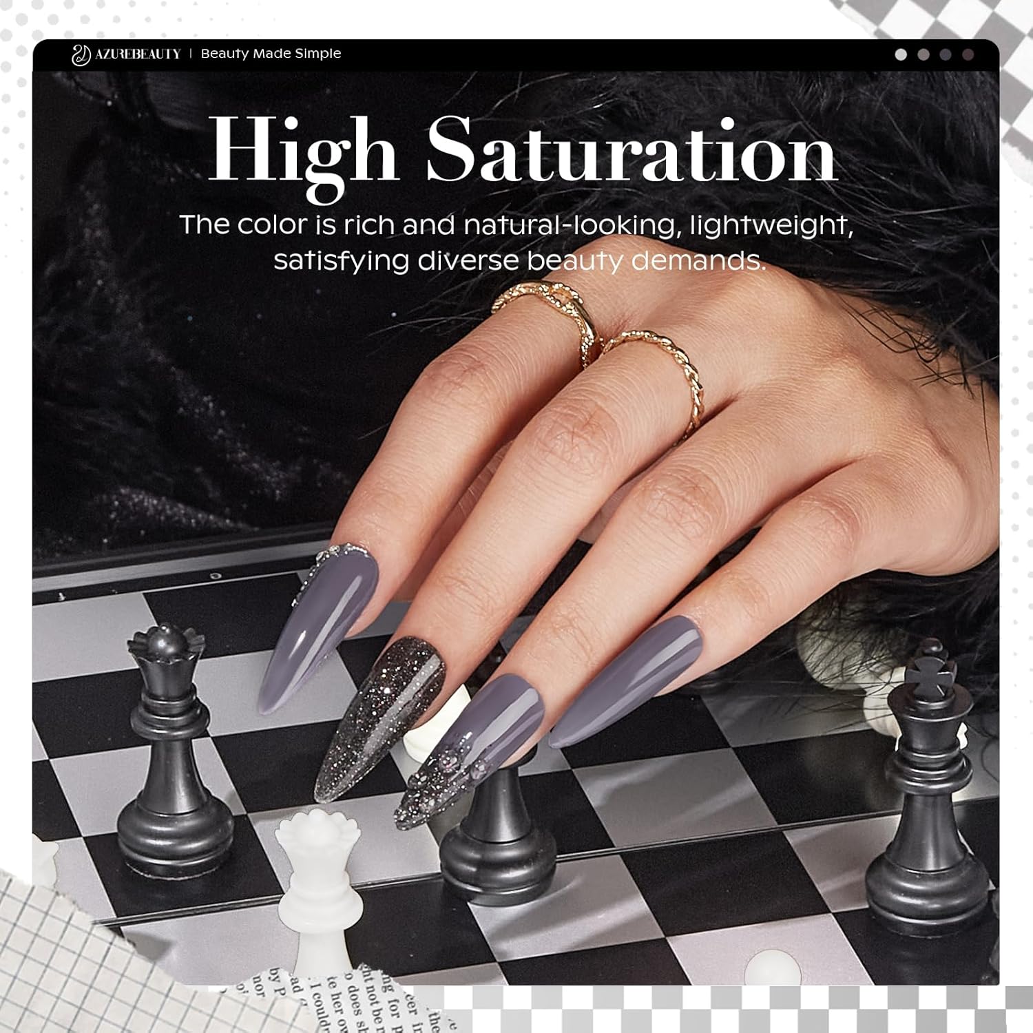 - What U Get: AZUREBEAUTY 12 PCS elegant dip powder nail starter kit—4*10 g color powder(pale gray, celadon, steel grey, shimmery black), 3*10 ml liquid set(base coat/activator/topcoat), 2*liquid brush replacement, 1*nail brush,1*nail file, 1*dip powder recycling tray