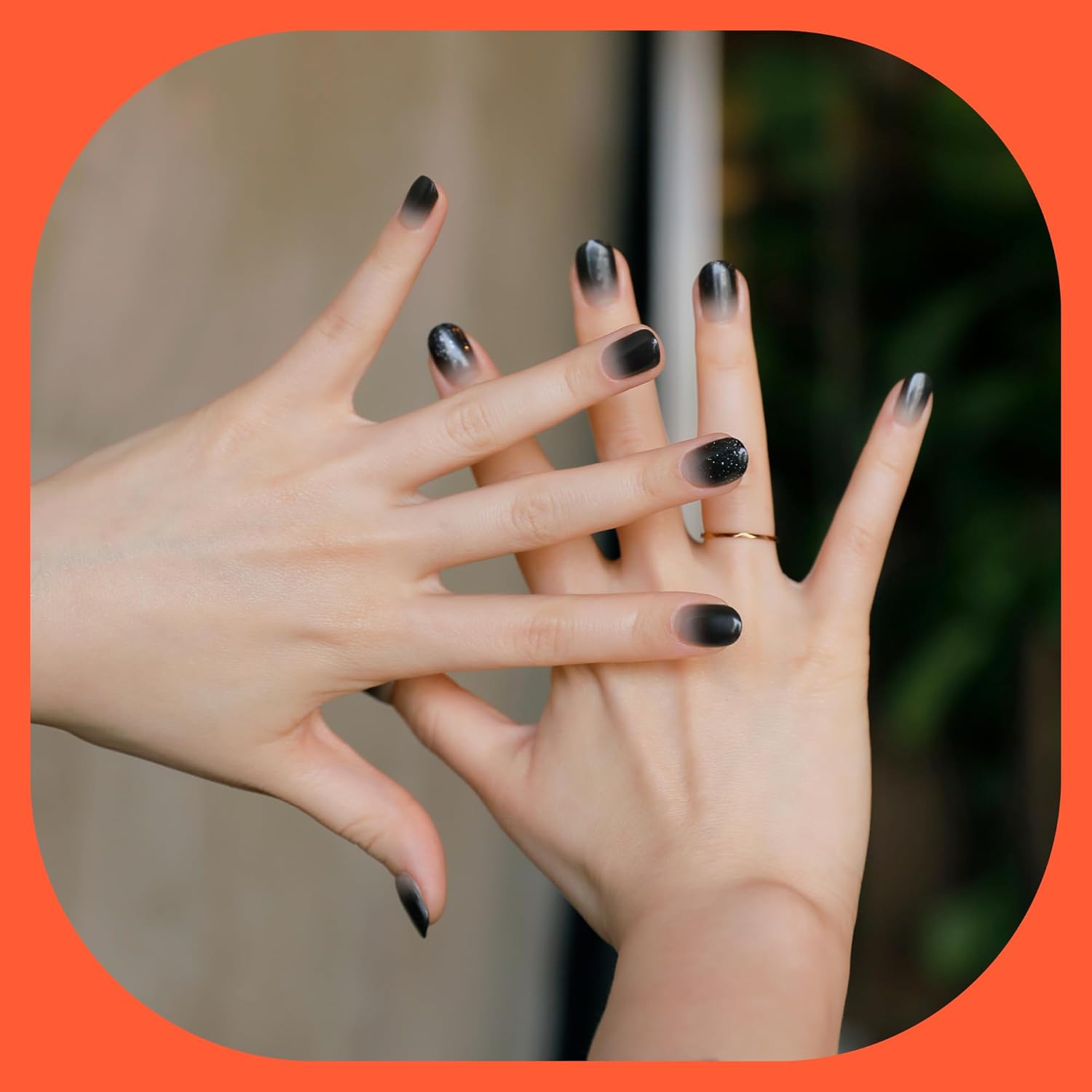 Semi Cured Gel Nail Strips | No LED Lamp Needed | Ombre, Black | Easy Apply & Remove, Salon Quality | Includes 28 Strips, 1 Prep Pads, Nail File & Wooden Stick - Hey, Text Me Back