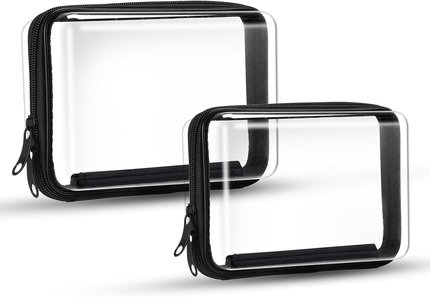 2PCS Zippered Hard Pouch Double,Portable Waterproof Cosmetic Bag with Zipper,Toy Storage Organizer Bins,Hard Plastic Case,Clear Zipper Bags for Organizing,Pencil Case (7.5+7inch)