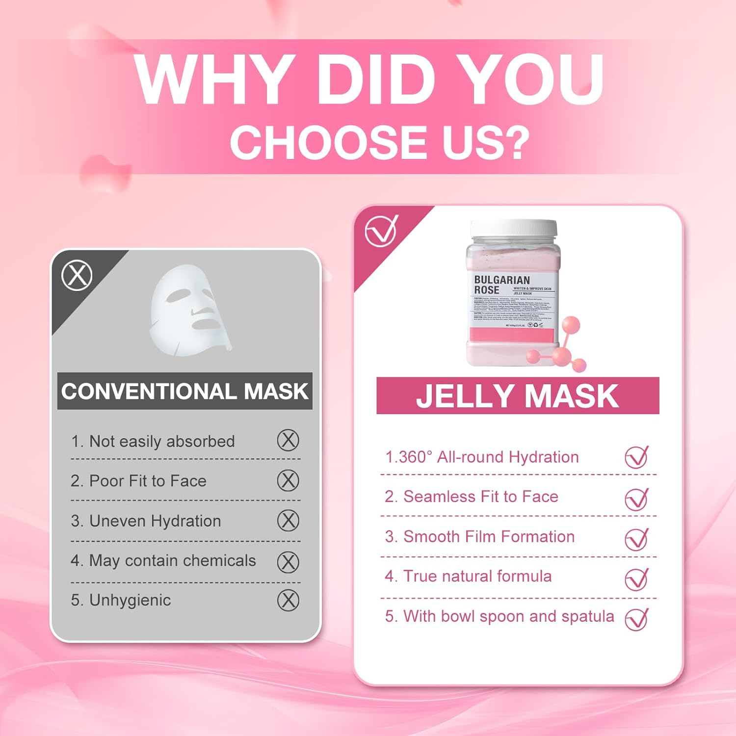 Jelly Mask for Facials Professional, Hydrating & Moisturizing Peel-Off Natural Gel Face Mask SkinCare, Professional Spa Use Jelly Face Masks, Deep Hydration & Glow 23 Fl Oz (Bulgarian Rose)