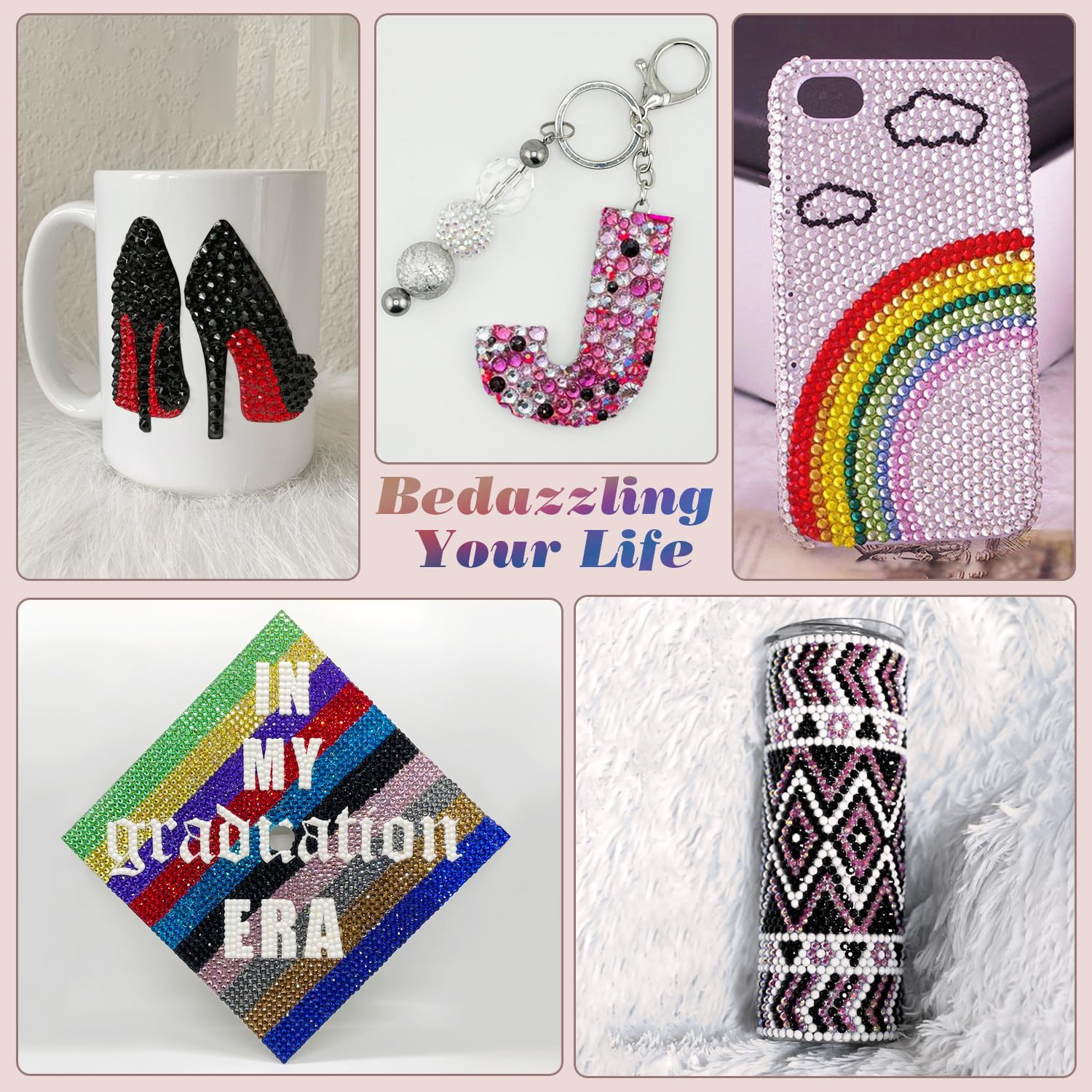 • ✨Great Amounts of Gems -- The bedazzling kit of resin rhinestones are in 3/4/5mm (about 3500pcs). The different sizes and abundant amount of resin gemstones not only enables you to ornament many little stuff, but can also satisfy your need to pave large area designs such as diamond paintings or cups.