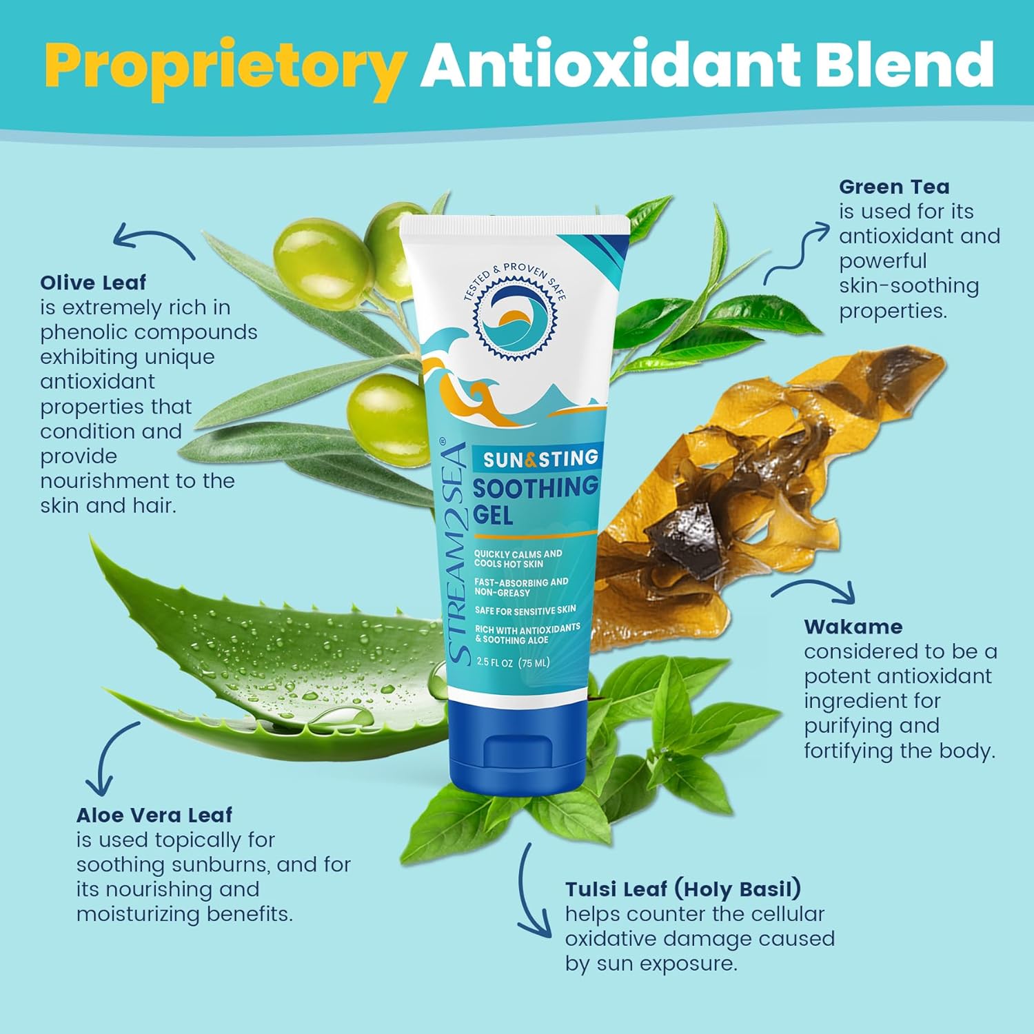 - NATURAL SUNBURN RELIEF: Trusted for its high-quality ingredients, Stream2Seaโs after-sun gel is the best choice for sunburn relief. It hydrates, heals, and soothes your skin naturally, promoting a quick recovery.