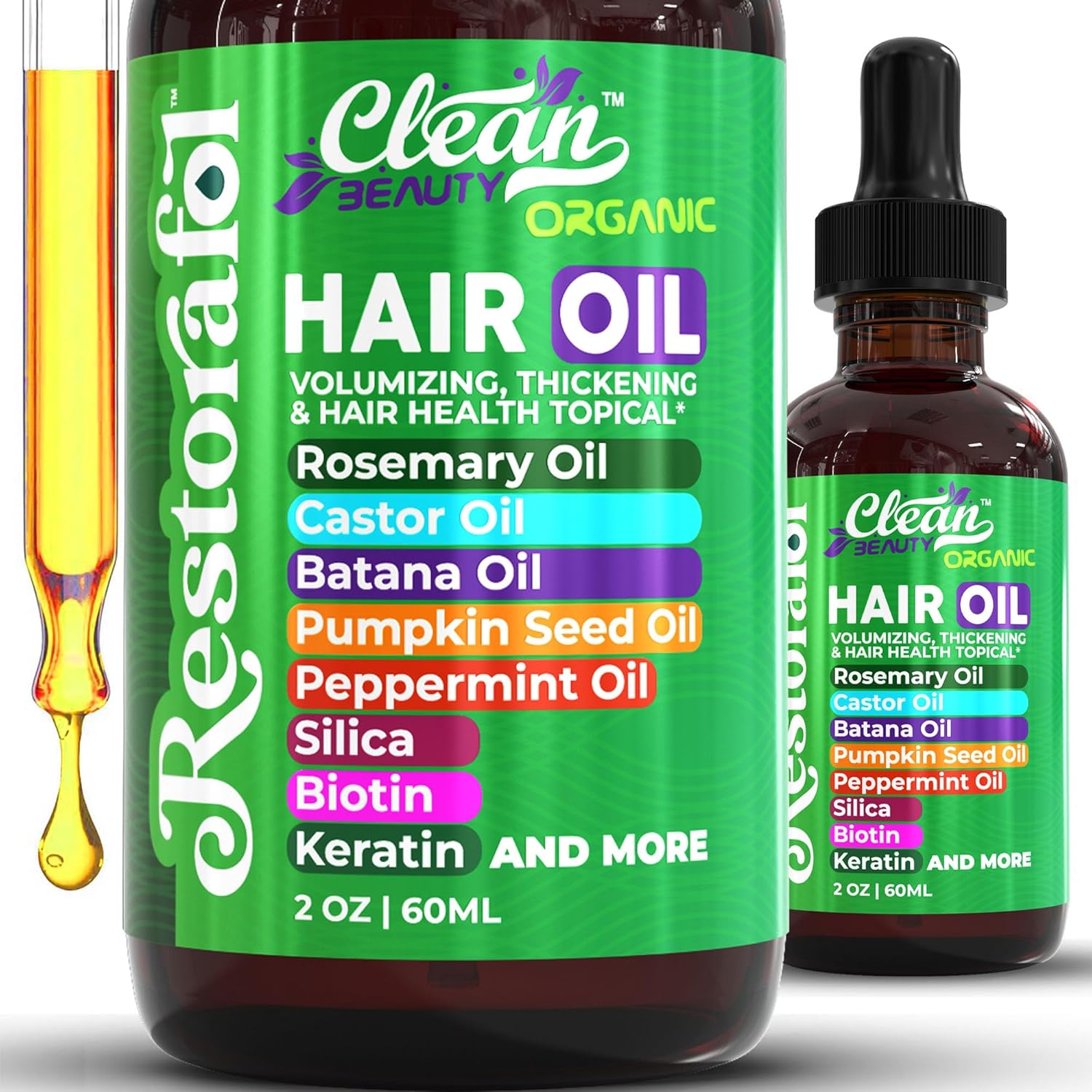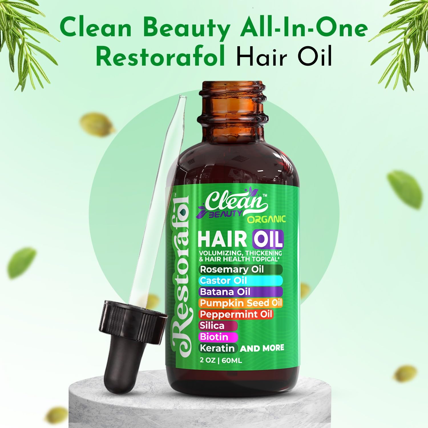 Clean Beauty Rosemary Hair Oil For Growth with Castor Oil Batana Oil Pumpkin Seed Oil Peppermint Oil Silica Biotin Collagen Keratin Saw Palmetto Horsetail Tea Tree Vit E Aloe Vera Jojoba (1 Pack)