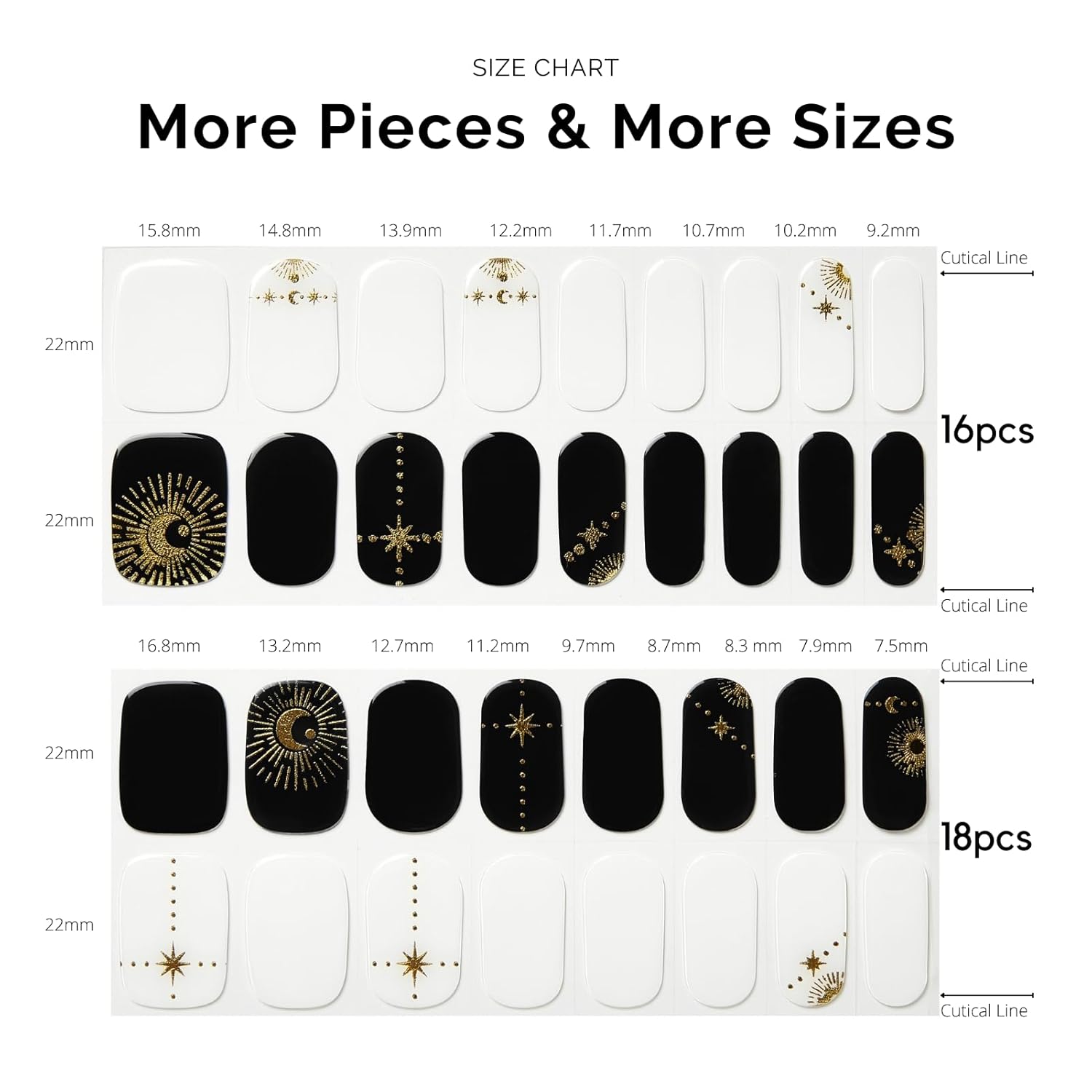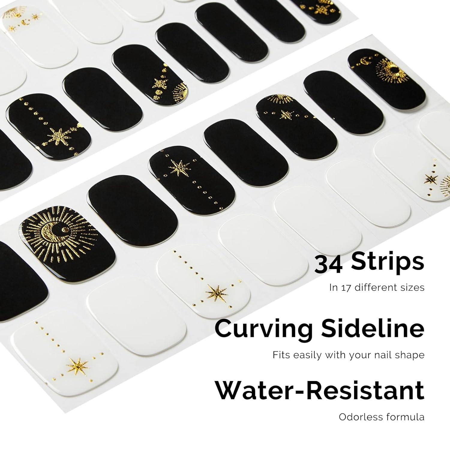 Semi Cured Gel Nail Strips - NAILOG 34 Pcs Gel Nail Stickers Buy 2 Get 1 UV Light | Long Lasting Nail Wraps with Glossy Gel Finish Black, Astral Glyphs
