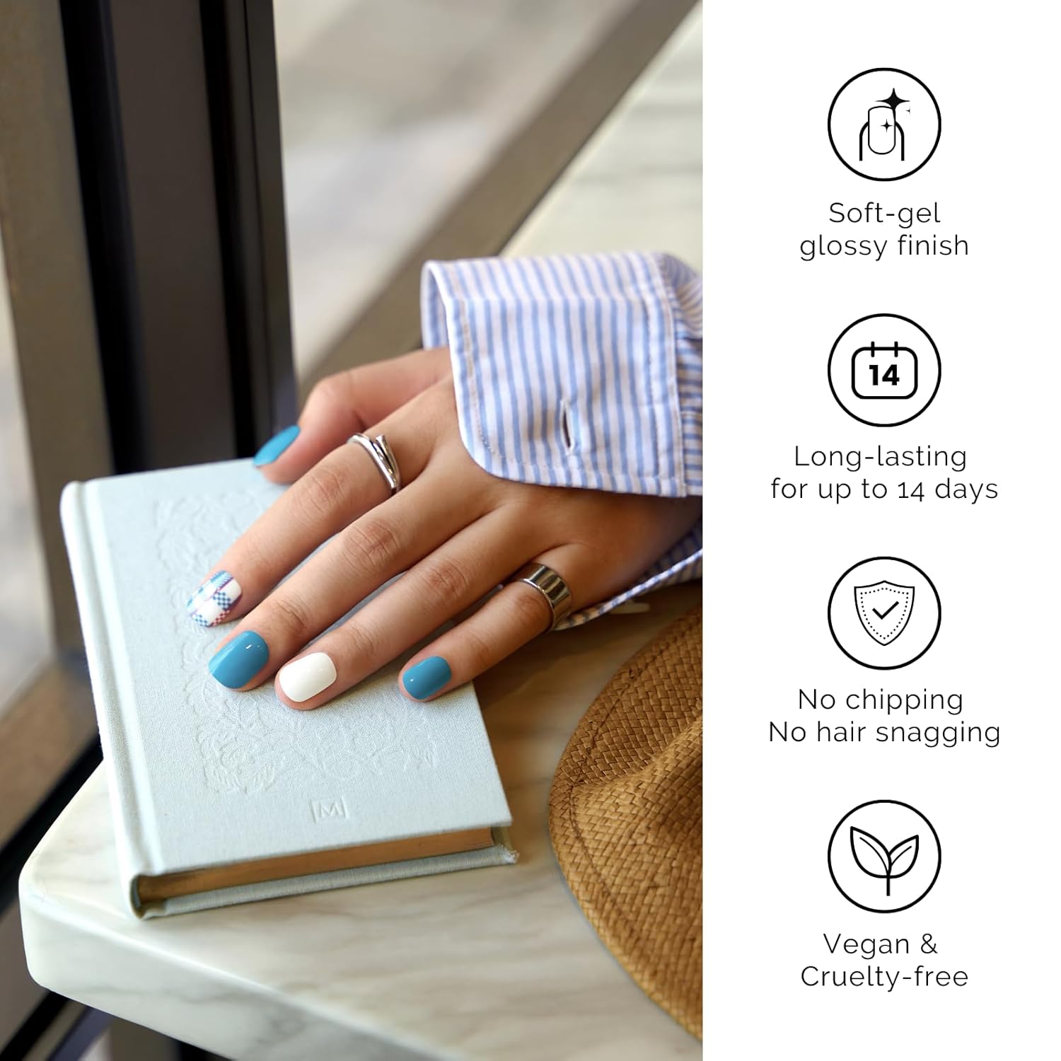 - ăEASY TO APPLYăWith an easy & fast application method, you can get a perfect nail look in minutes! - Nailog semi cured nail stickers are suitable for both manicurists and beginners, so you need not hesitate, even if you have never had a manicure.