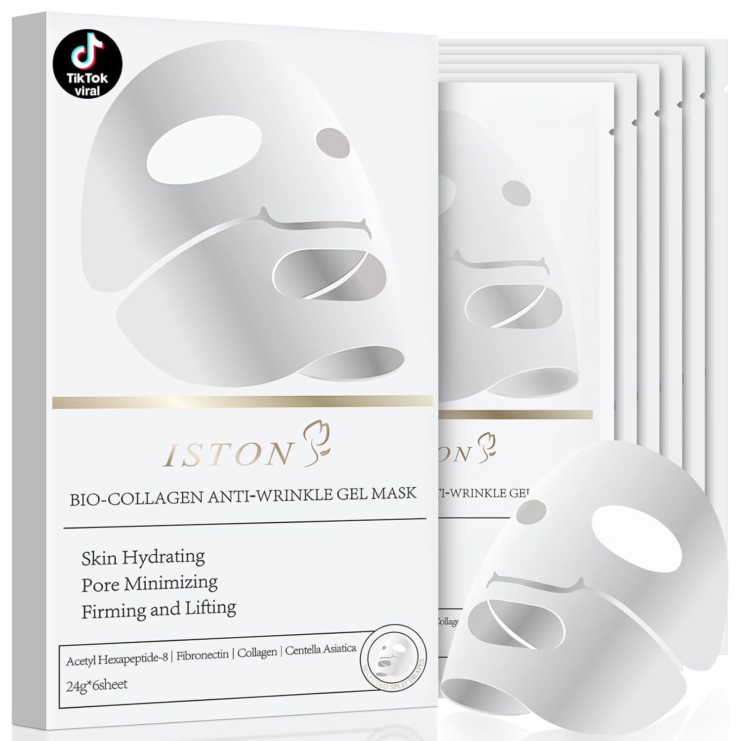 ISTON 6 Pack Bio-Collagen Real Deep Anti Wrinkle Lifting Mask,Overnight Hydrating Face Mask for All Skin Types -Pore Minimizing,Elasticity Enhancing,Firming,Moisturizing