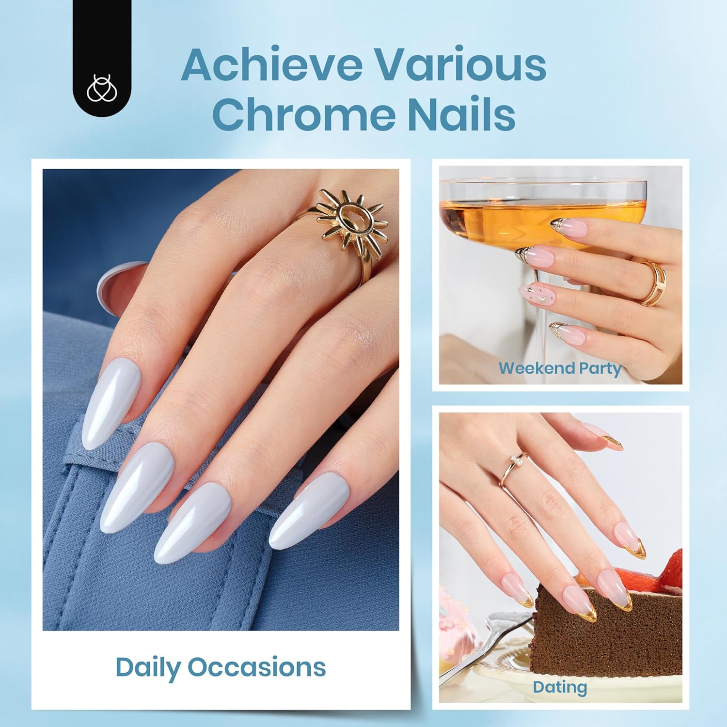 - Super Bright Mirror Effect: The Conventional sealing layer is easy to dissolve powder over time, and the magic mirror powder rubbed out is relatively rough, and the mirror effect is not prominent. Our sealing layer can ensure that the powder will not dissolve for more than 5 minutes, and you can get the texture of a metal mirror. The manicure is shining in all kinds of light conditions, adding dazzling light to your fingertips.