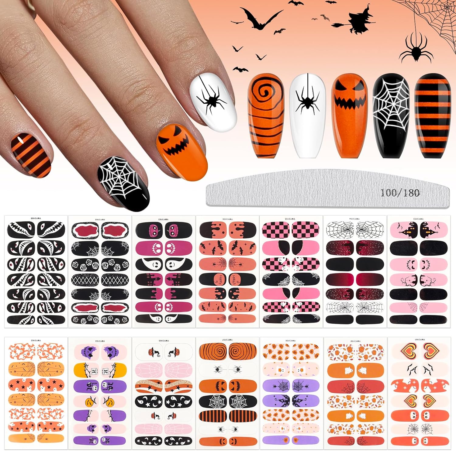 - What You Get: You will receive 14 sheets Halloween full cover stickers in different patterns, abundant quantity and various styles and 1 nail file to help you finish nail artworks easily.