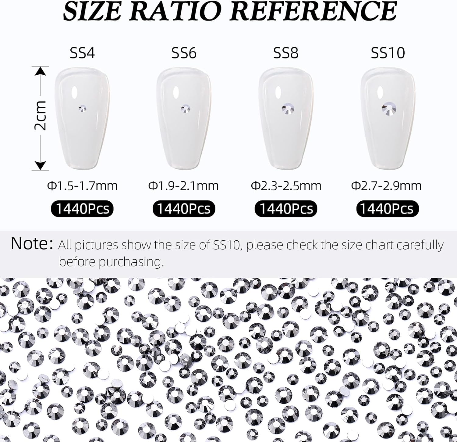 - Product Packaging: Bags packaging SS4 1.5~1.7 MM - 1440 Pcs Black hematite flatback rhinestones