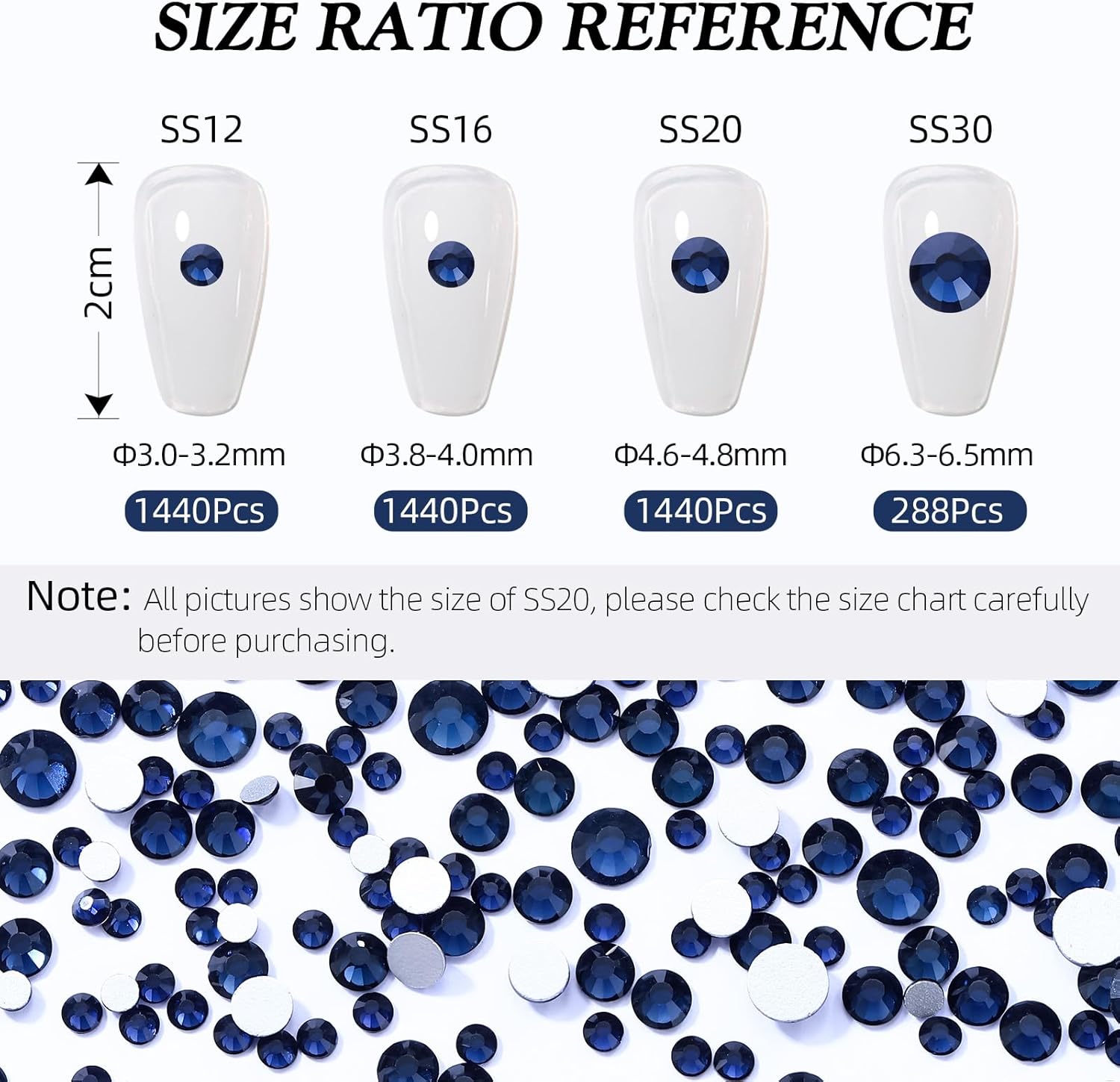 Montana Flatback Rhinestones, Glass Rhinestones for Nail Art and Craft, Glue Fix, Loose Crystal Gemstones(Montana, SS16, 1440pcs, 3.8-4.0mm)