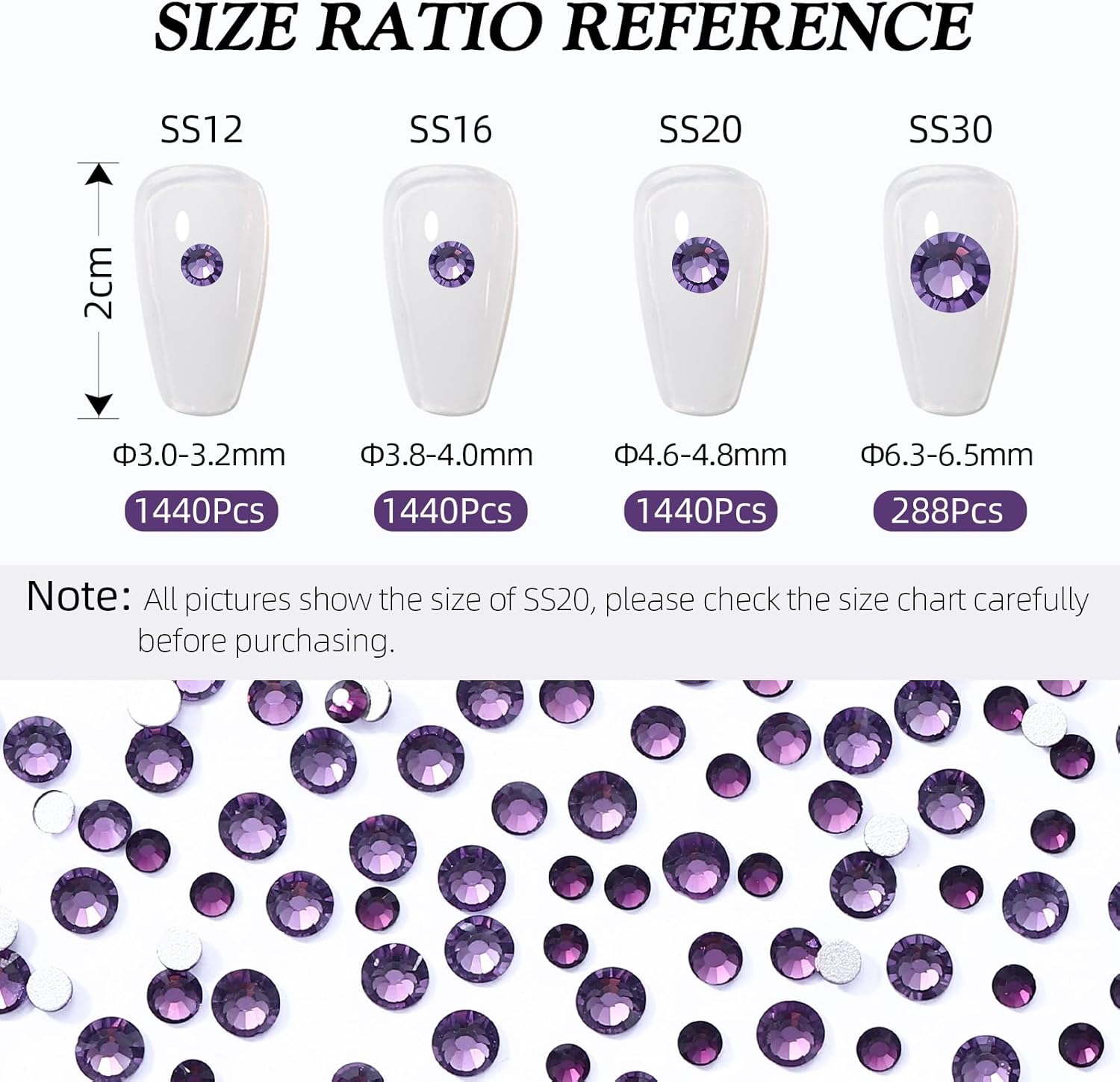 Tanzanite Flatback Rhinestones, Glass Rhinestones for Nail Art and Craft, Glue Fix, Loose Crystal Gemstones(Tanzanite, SS30, 288pcs, 6.4-6.6mm)