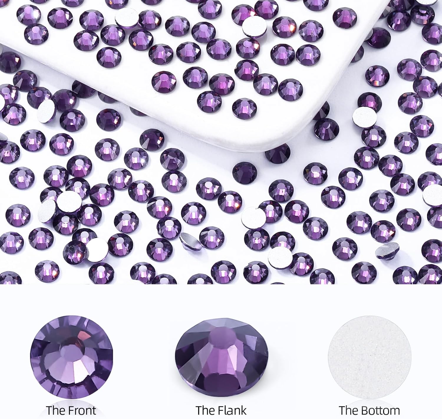 Tanzanite Flatback Rhinestones, Glass Rhinestones for Nail Art and Craft, Glue Fix, Loose Crystal Gemstones(Tanzanite, SS6, 1440pcs, 1.9-2.0mm)
