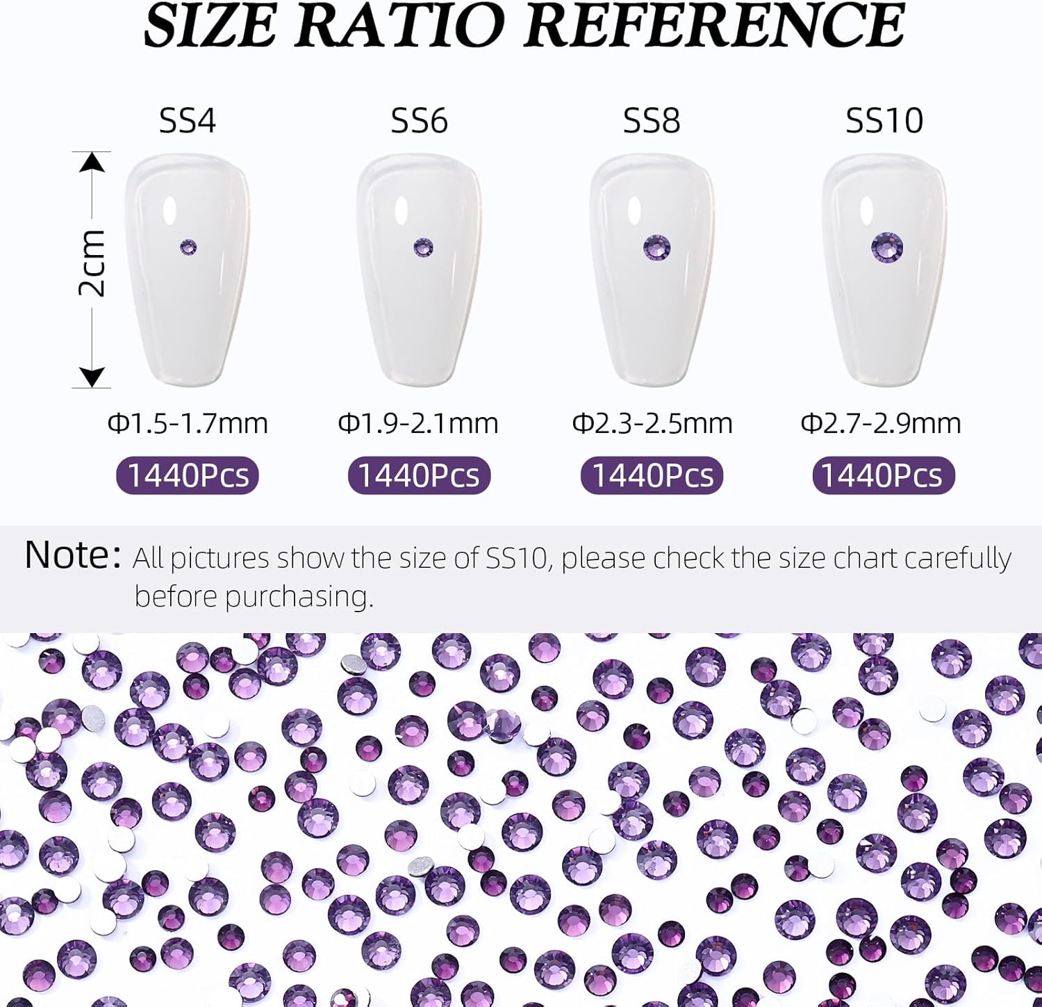 Tanzanite Flatback Rhinestones, Glass Rhinestones for Nail Art and Craft, Glue Fix, Loose Crystal Gemstones(Tanzanite, SS8, 1440pcs, 2.3-2.5mm)