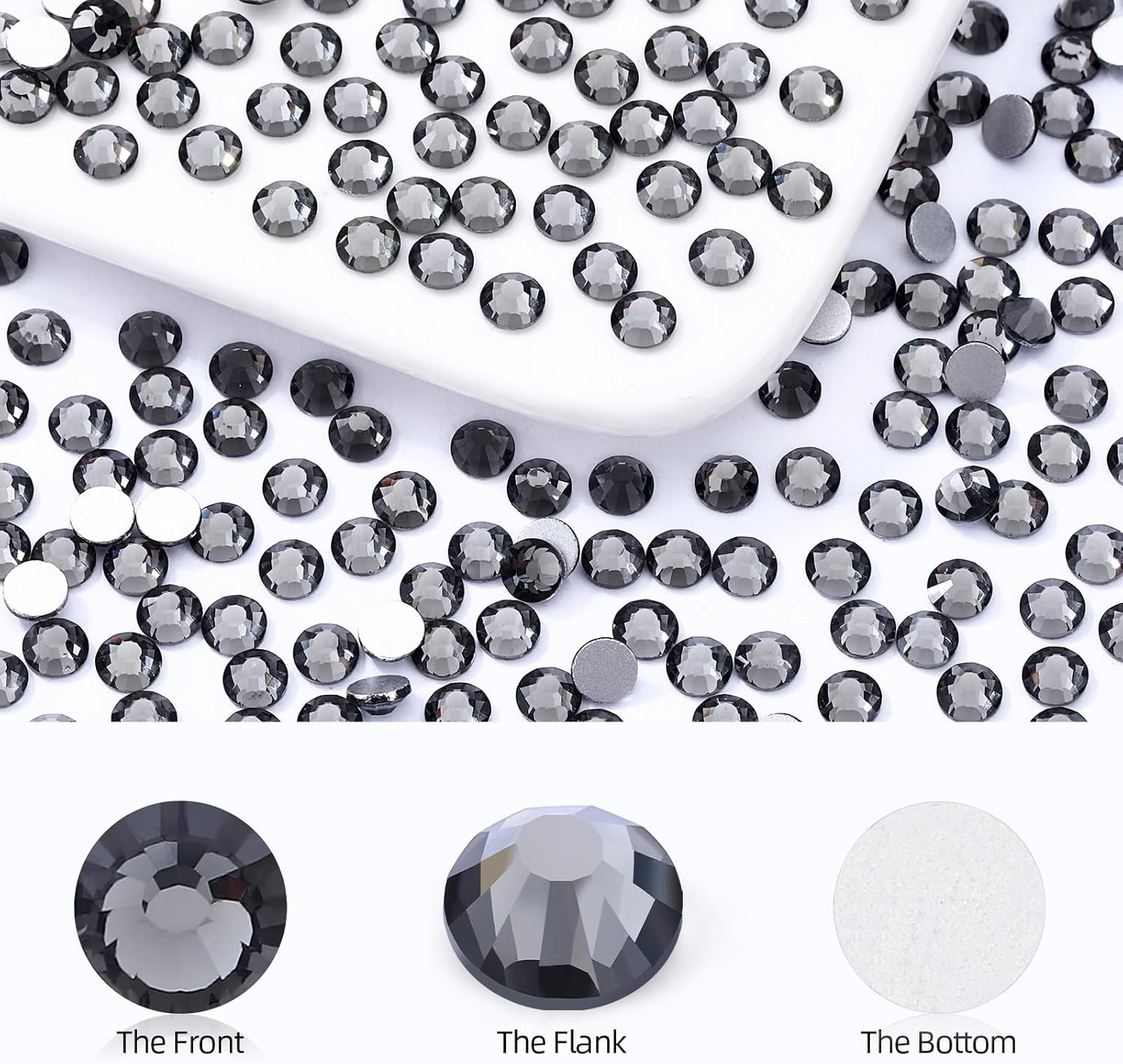 Gray Flatback Rhinestones, Glass Rhinestones for Nail Art and Craft, Glue Fix, Loose Crystal Gemstones(Gray, SS30, 288pcs, 6.4-6.6mm)