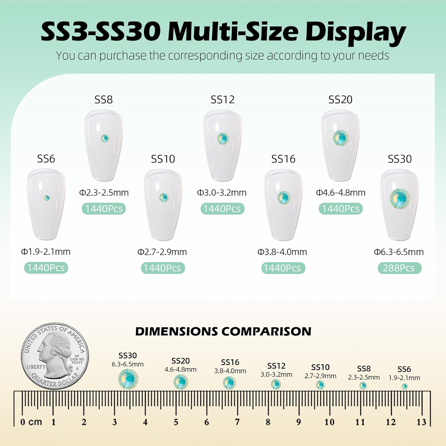 - Material: Glass/Artificial Crystal, Flat Back Round, High-precision cross-section, multi-sided cutting, high brightness, high Sparkly