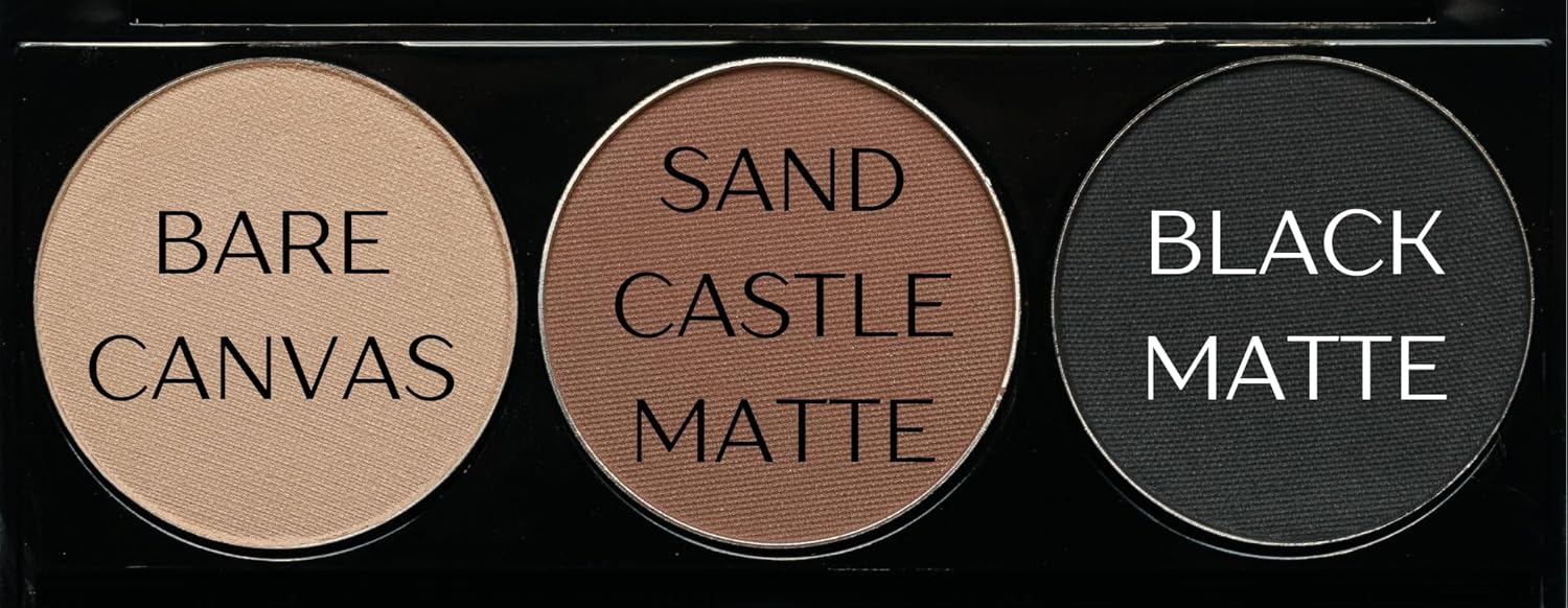 Matte Black, Medium Brown and Off White Vegan Eyeshadow Trio Palette; Talc, Paraben & Cruelty Free