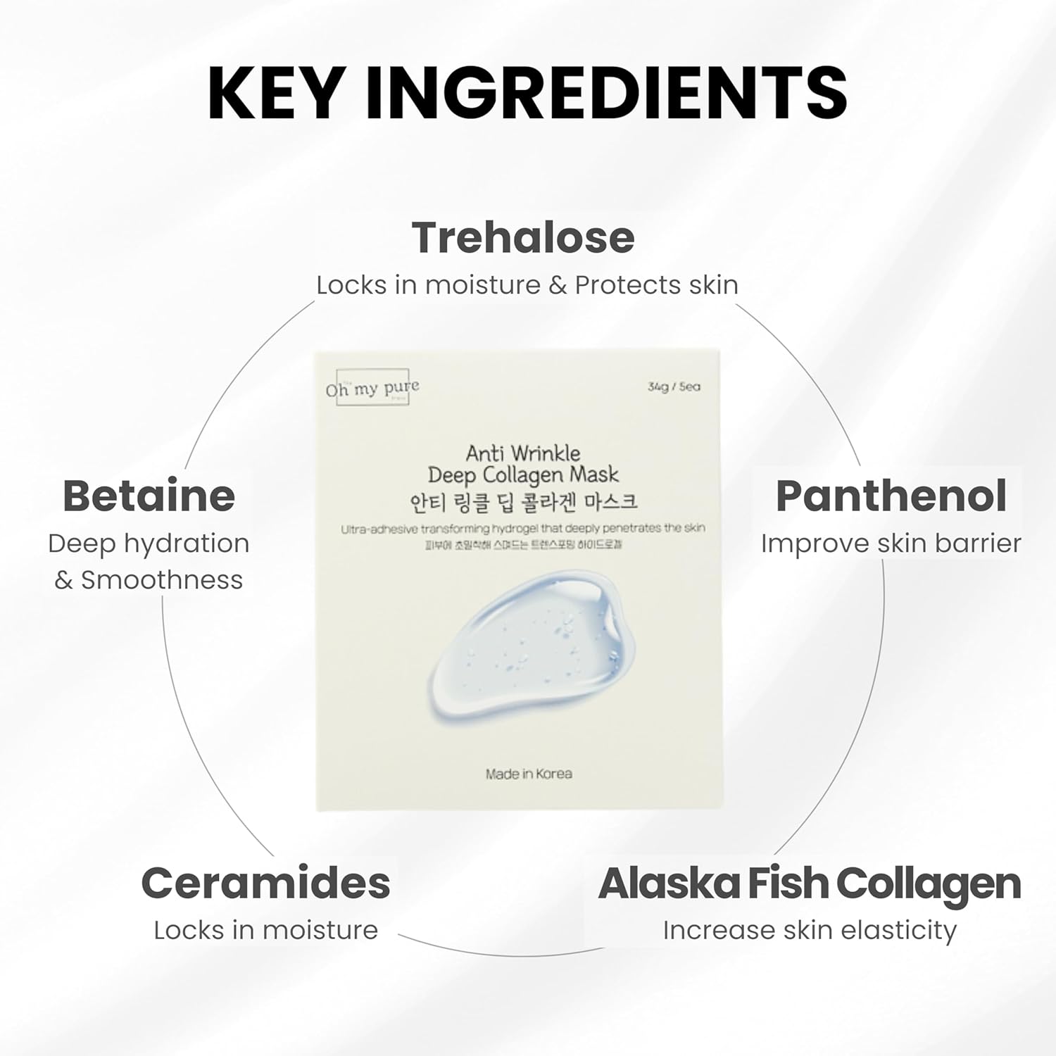 Collagen Hydrogel AntiWrinkle Deep Face Mask 15 EA Ultimate Hydration, Improves Skin Texture, Affordable Luxury, Glowing Skin, Reduces Fine Lines & Wrinkles, Made in Korea OHMYPURE (15, Deep Collagen)