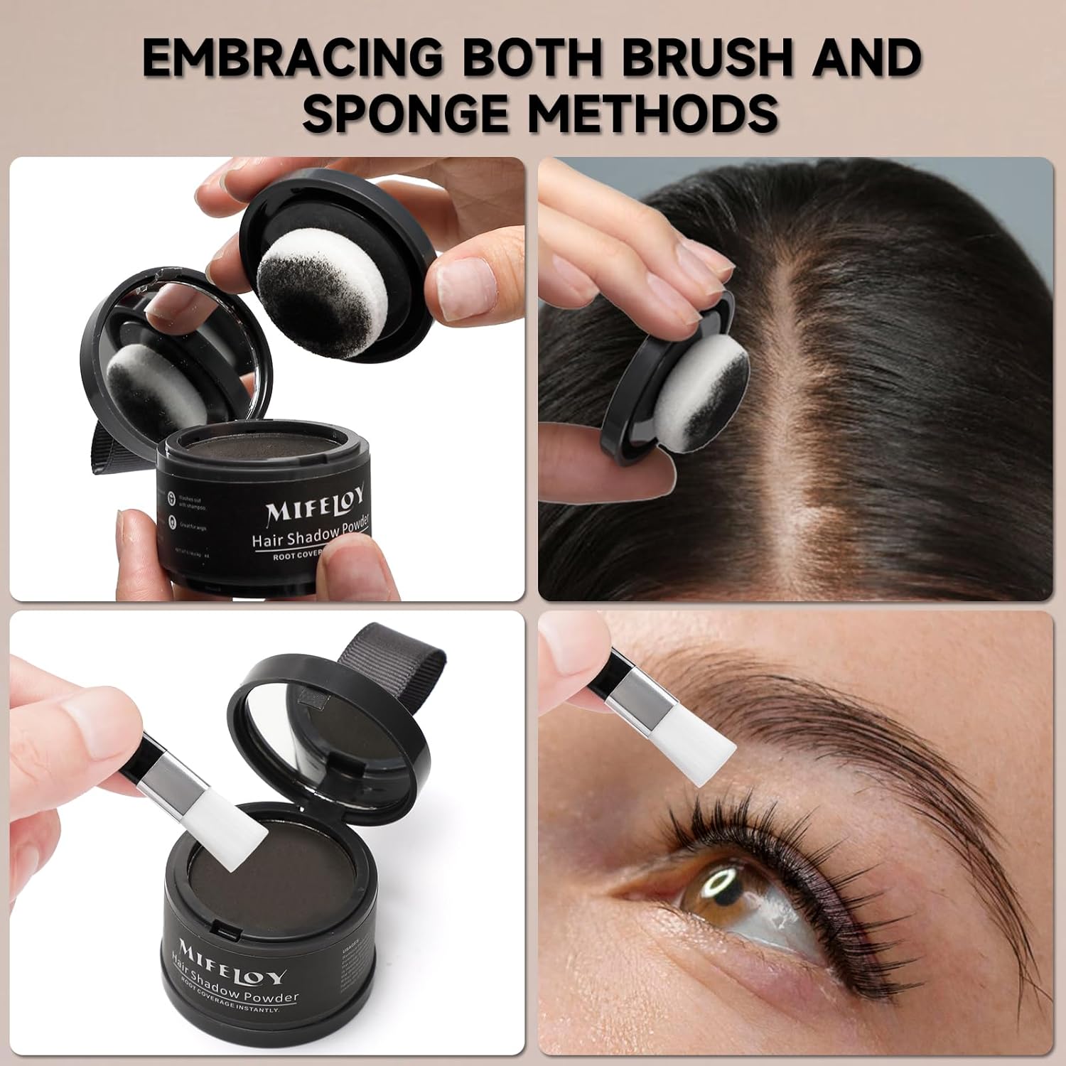 - Enhance Styling - Made from safe, all-natural ingredients, this soft hair shadow powder won’t clog your pores or damage your hair. It stays on for 14+ hours, providing long-lasting coverage that’s sweatproof, windproof, and easy to clean with regular shampoo. Experiment with different shades and styles, available in 12 kinds of different brown, gray, blonde.