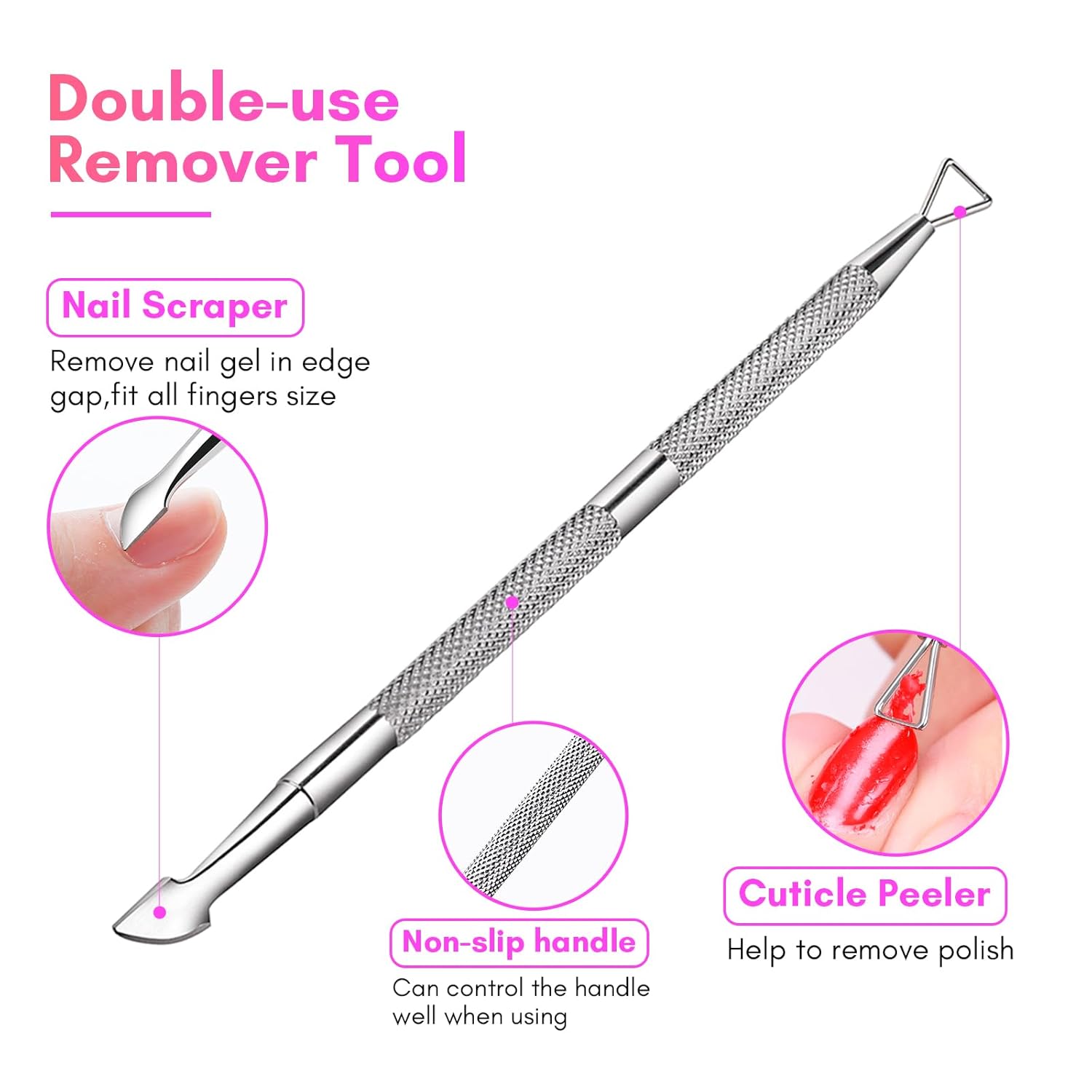- Makartt’s Gel Soak Off Remover Kit is the perfect solution for safely and efficiently removing gel polish, acrylic nails, and press-on nails, whether you’re at home or in a salon. This complete kit includes everything you need for easy, professional-level gel polish removal, featuring 1 double-ended cuticle pusher, 10 reusable finger nail polish remover clips, and 10 toe nail clips.