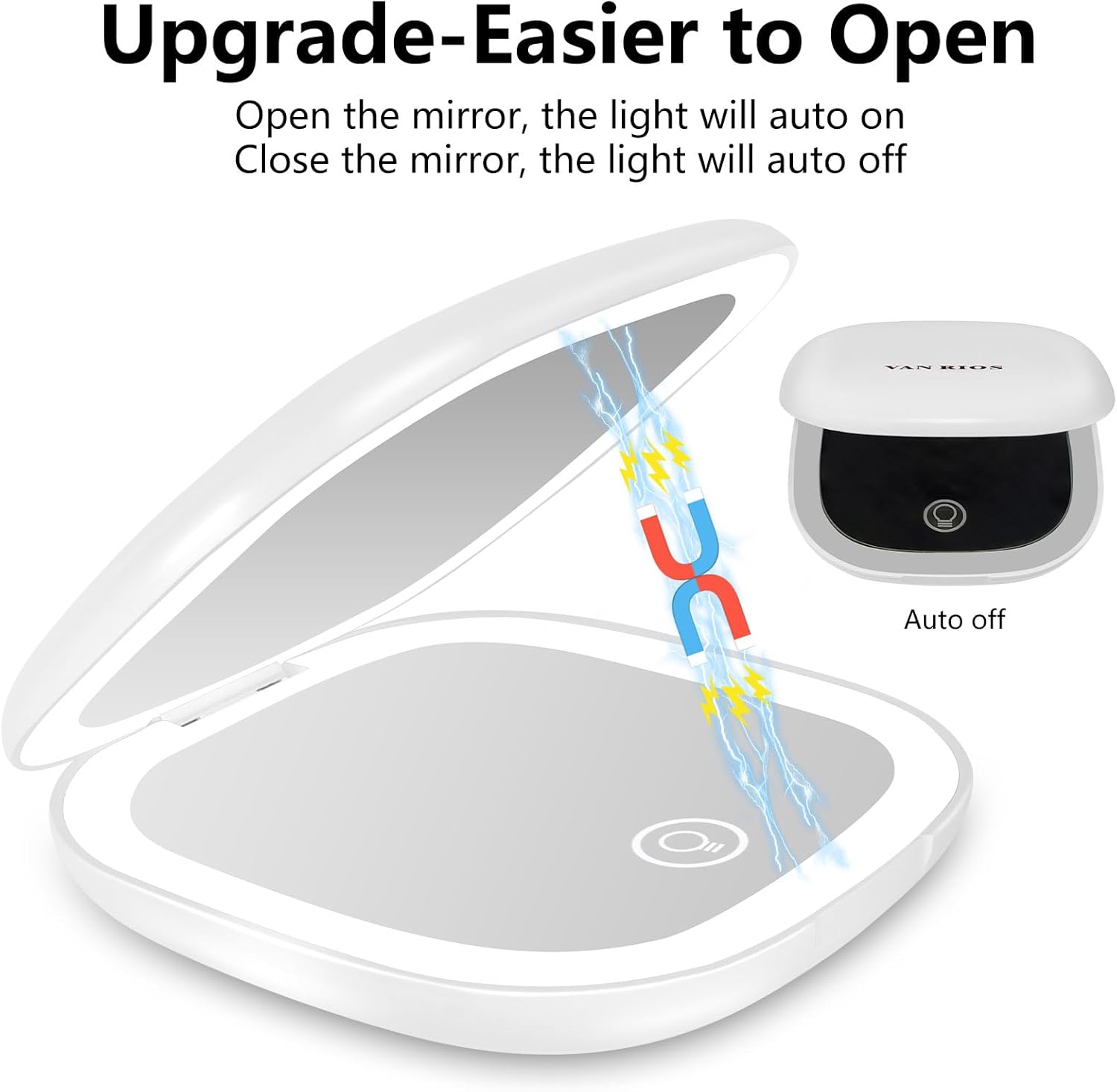 - RECHARGEABLE AND USER-FRIENDLY:This portable mirror with lights is USB rechargeable, providing long-lasting illumination without the need for batteries. The automatic shut-off feature turns off the lights when closed, conserving energy and enhancing convenience in this lighted compact mirror design.