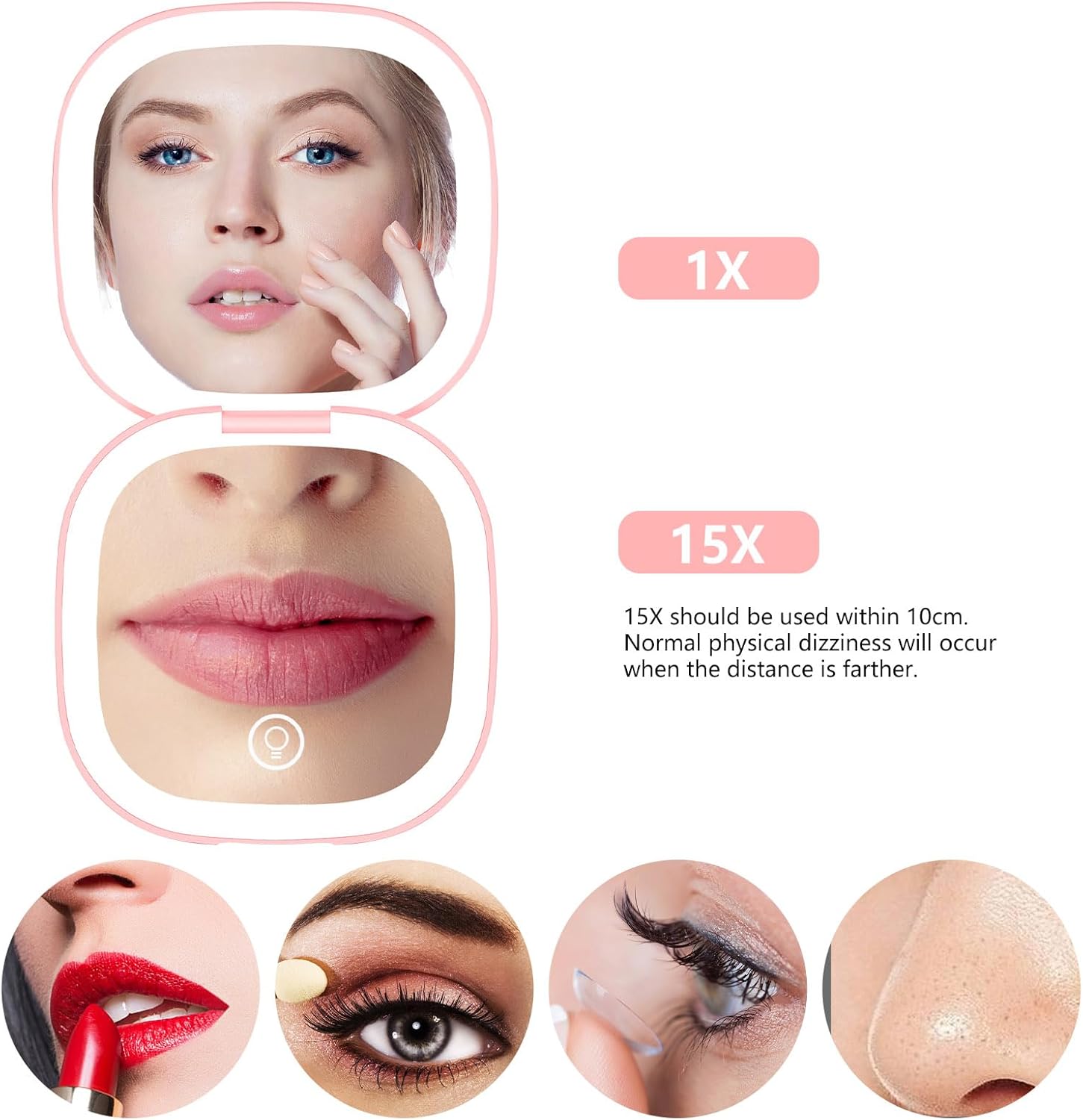 - RECHARGEABLE AND CONVENIENT:Say goodbye to battery worries with this rechargeable compact mirror with light. Designed as a pocket mirror, it charges quickly and lasts for multiple uses, making it an indispensable part of your travel essentials.