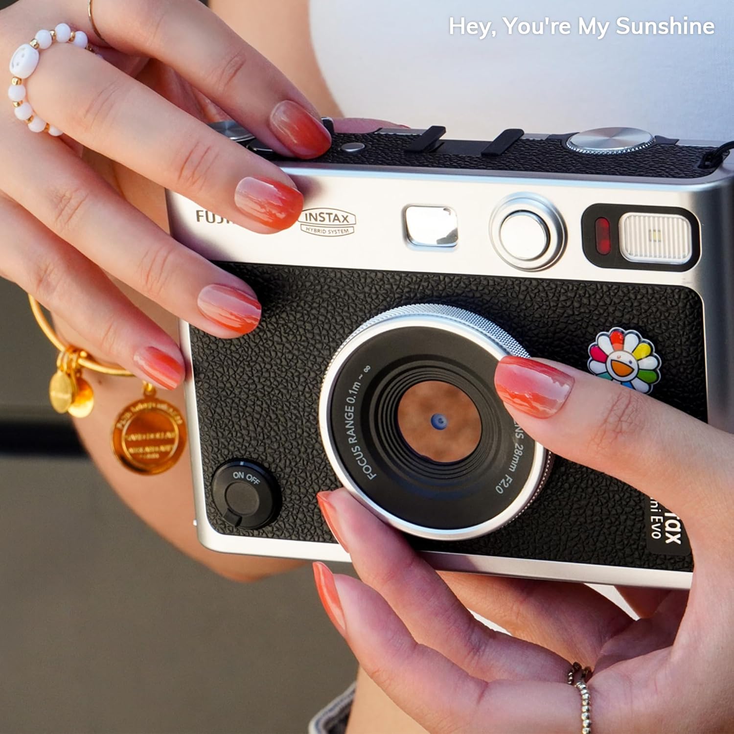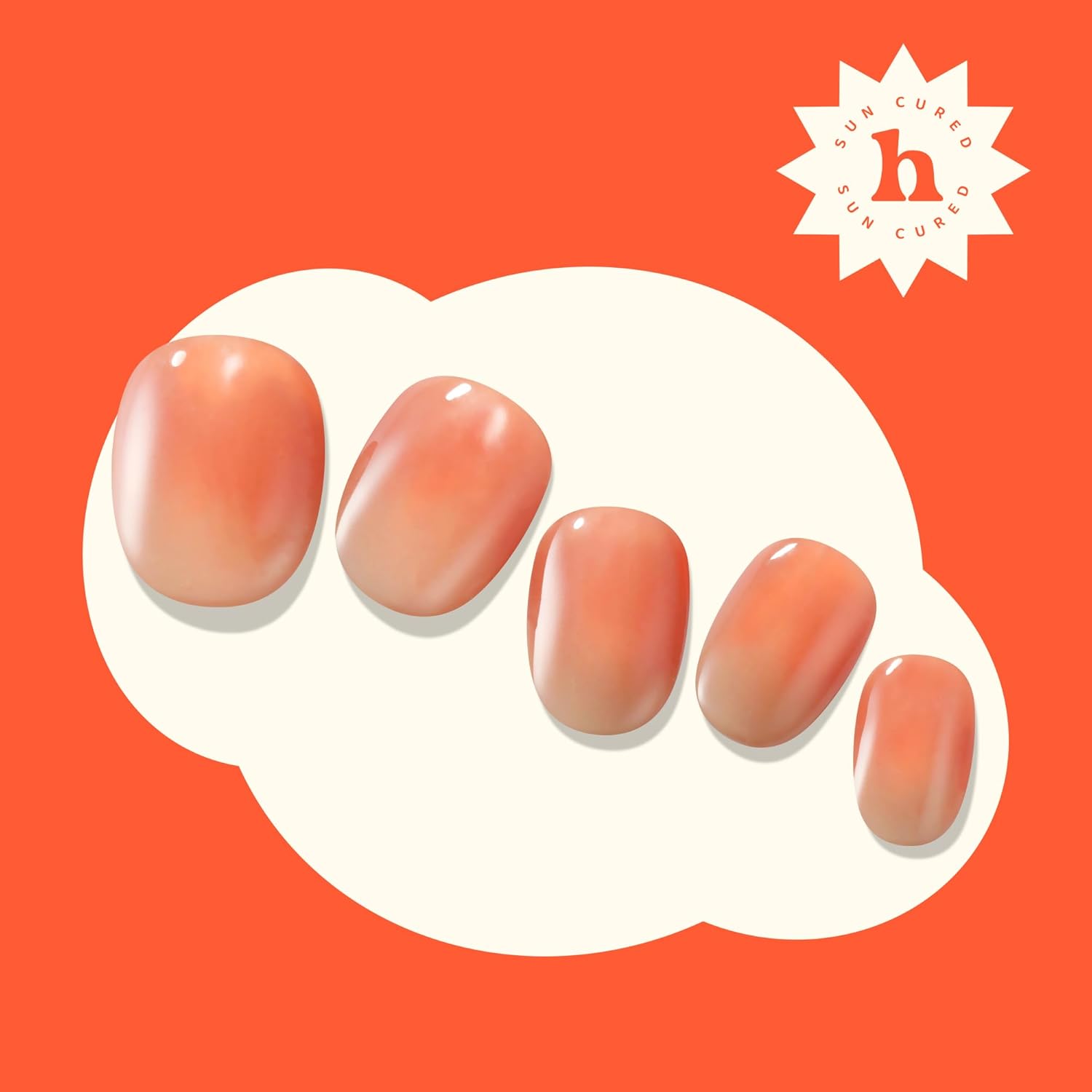 Semi Cured Gel Nail Strips | No LED Lamp Needed | Ombre, Orange, Spring | Easy Apply & Remove, Salon Quality |Includes 28 Strips, 1 Prep Pads, Nail File & Wooden stick - Hey, You're My Sunshine