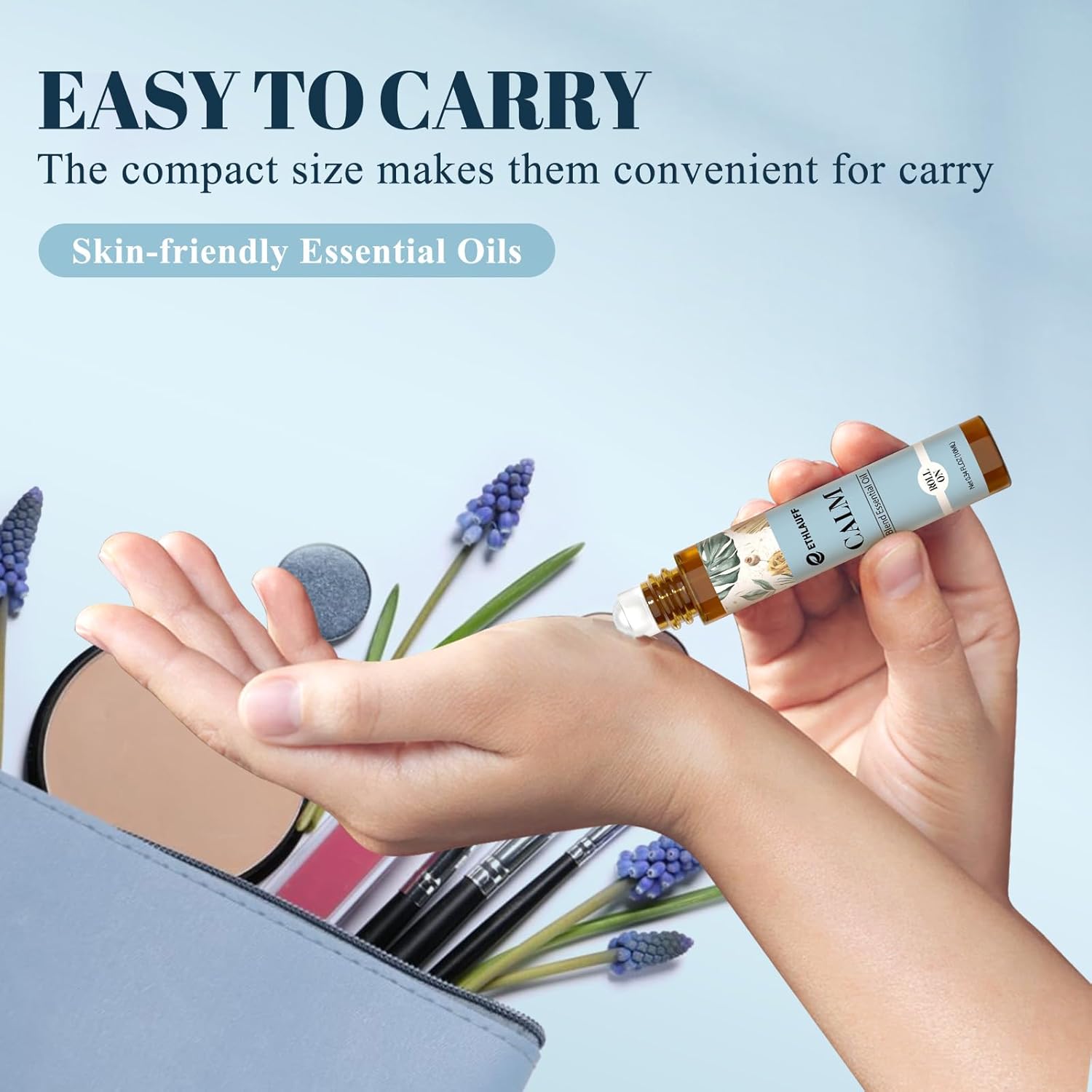 - Relaxing Travel Essentials: Our pure essential oils with rollerball are also perfect travel accessories .The compact size of each oil makes them convenient for travel or go outside, easy to pass through airport security. A controlled amount of essential oil is released only when the roller ball moves across a solid surface so you don't have to worry about spills during travel. Take them with you wherever you go for calm and wellness!