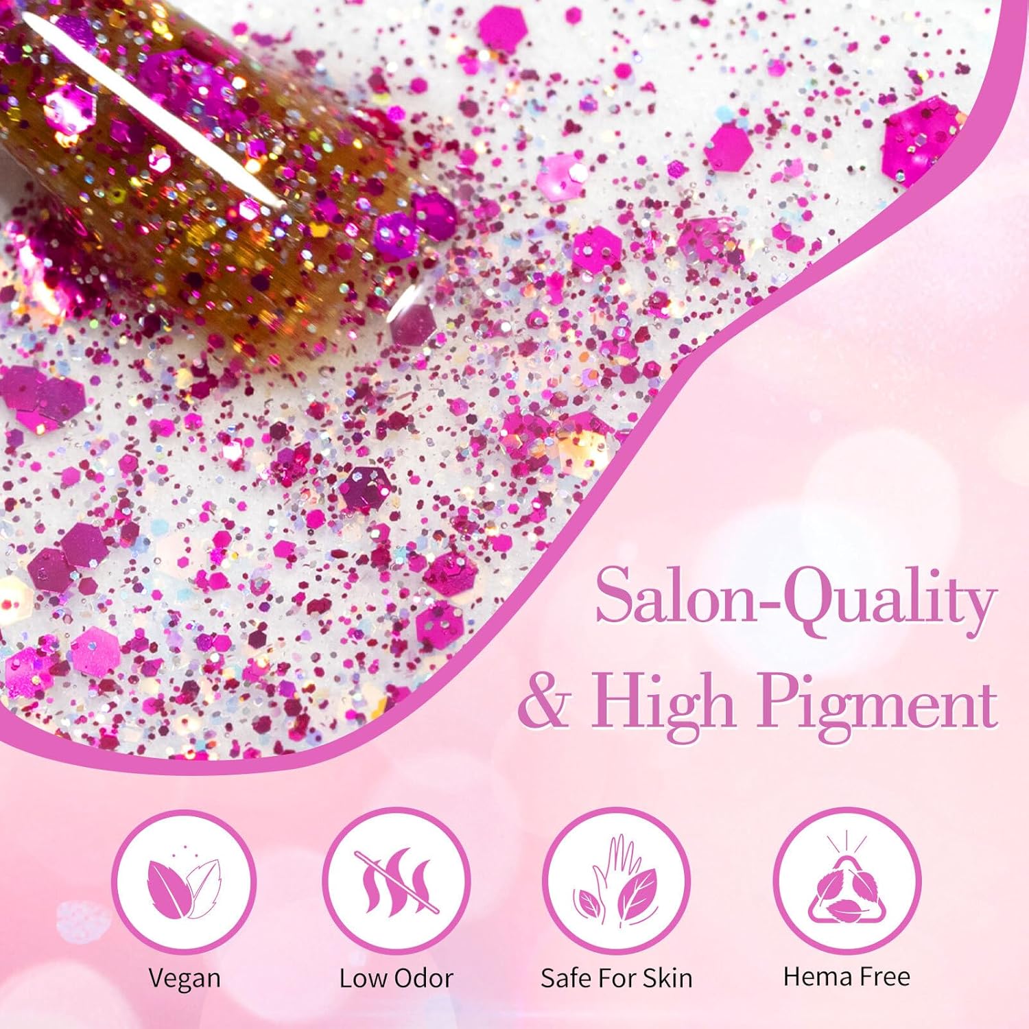 - Long-Lasting Durability: Designed for extended wear, this glitter gel polish is chip-resistant and maintains its vibrant shine for up to three weeks