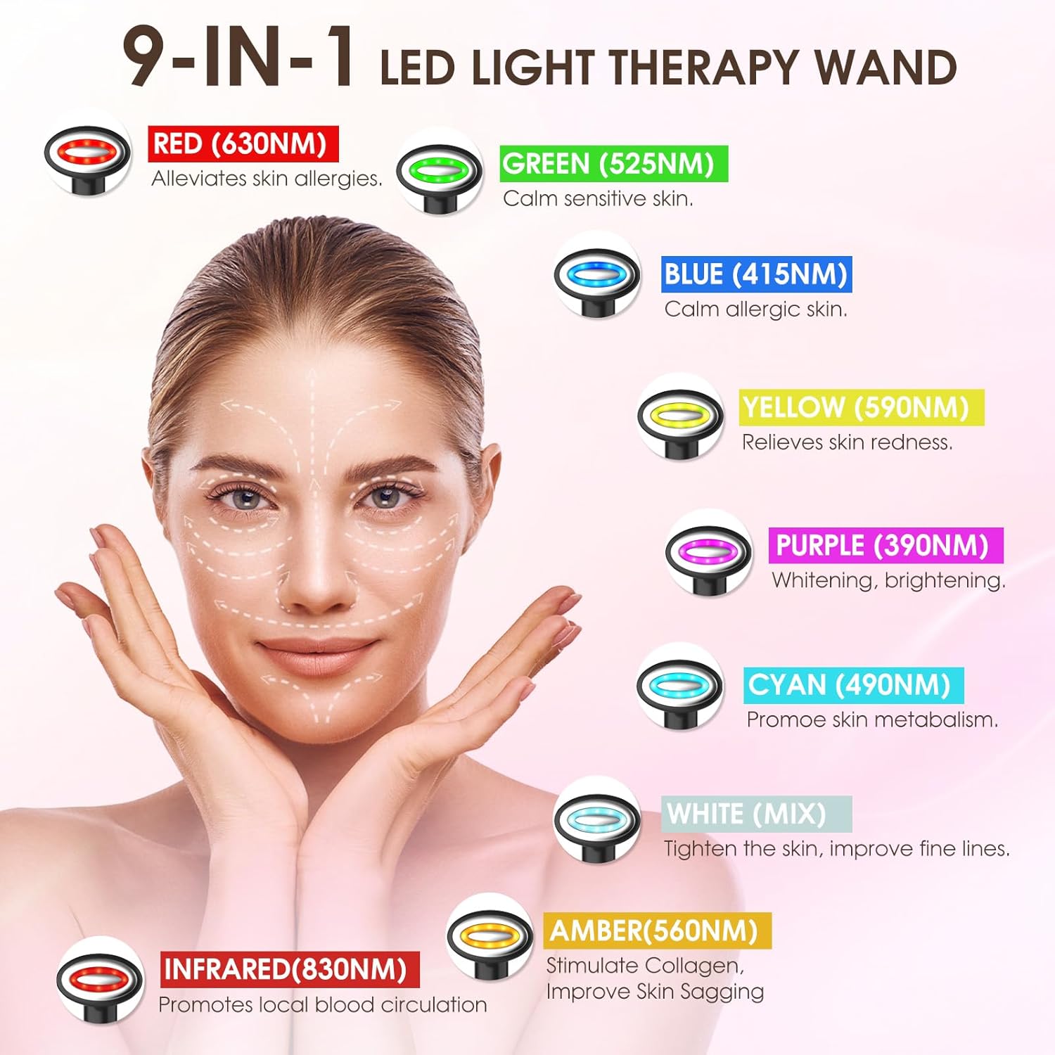 Light-Therapy-Wand, Red Light Therapy for Face and Neck, 9-in-1 Led Facial Sculptor Rejuvenation Eyes & Face Massager Tool