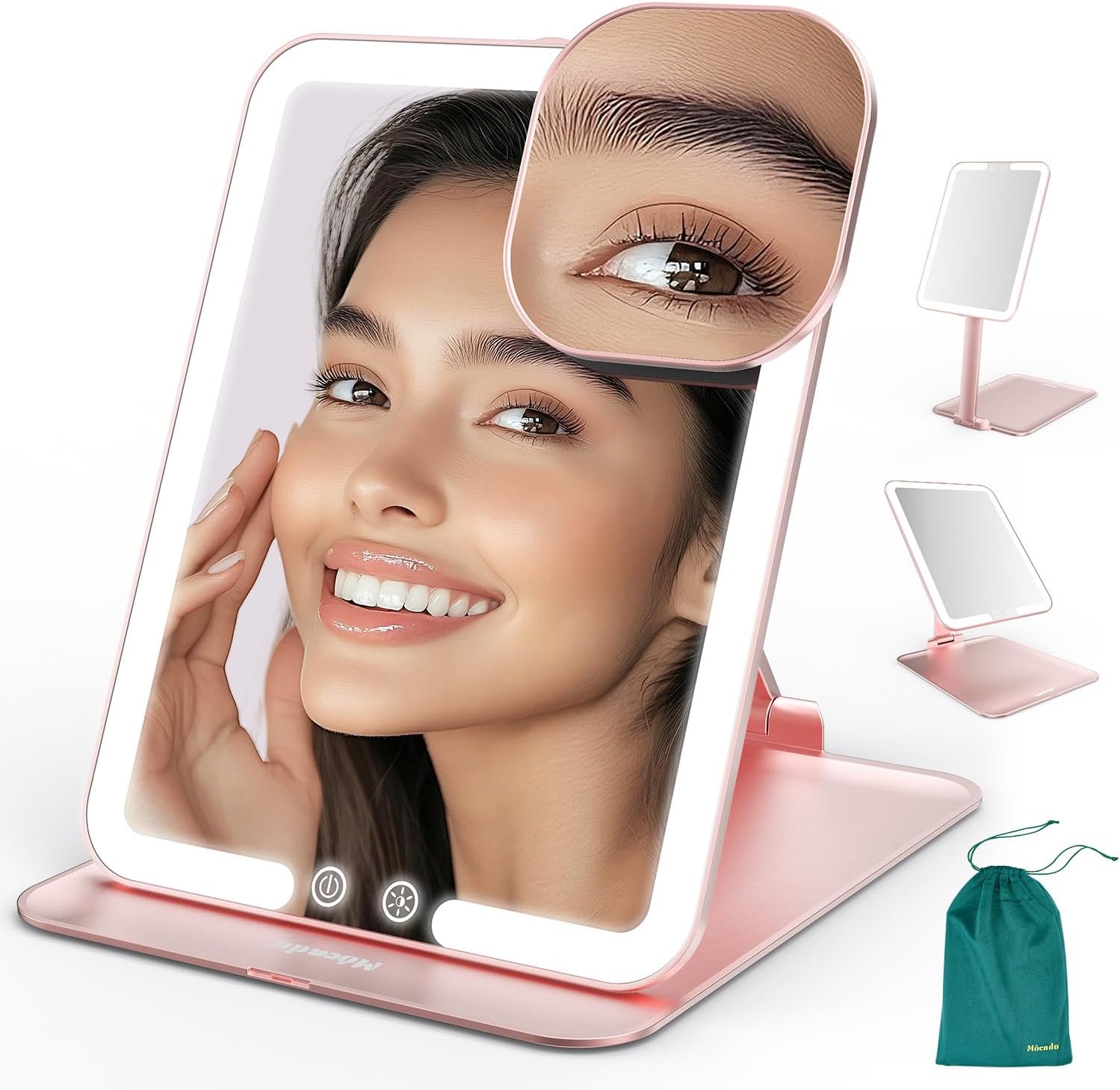 - ✔️【Portable For Carrying】Professional Travel Design Size: 8x6 Inches, only 0.6 Inch when folded, slim design, with velvet storage bag, easy to carry in handbag, backpack, luggage. Whether you are travelling, party or business trip, Mocado Travel Makeup Mirror is perfect for you.