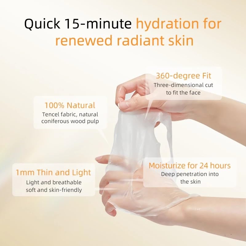 - 🌼BRIGHTENING & HYDRATING🌼Our Vitamin C sheet masks are packed with water-binding properties, making it a great moisturizer and keeping everything hydrated and plump while leaving the skin supple and dewy all day long. Made with our special blend of ingredients such as Nicainamide that increase skin elasticity, diminishes wrinkles, and improves skin's ability to lock in moisture.