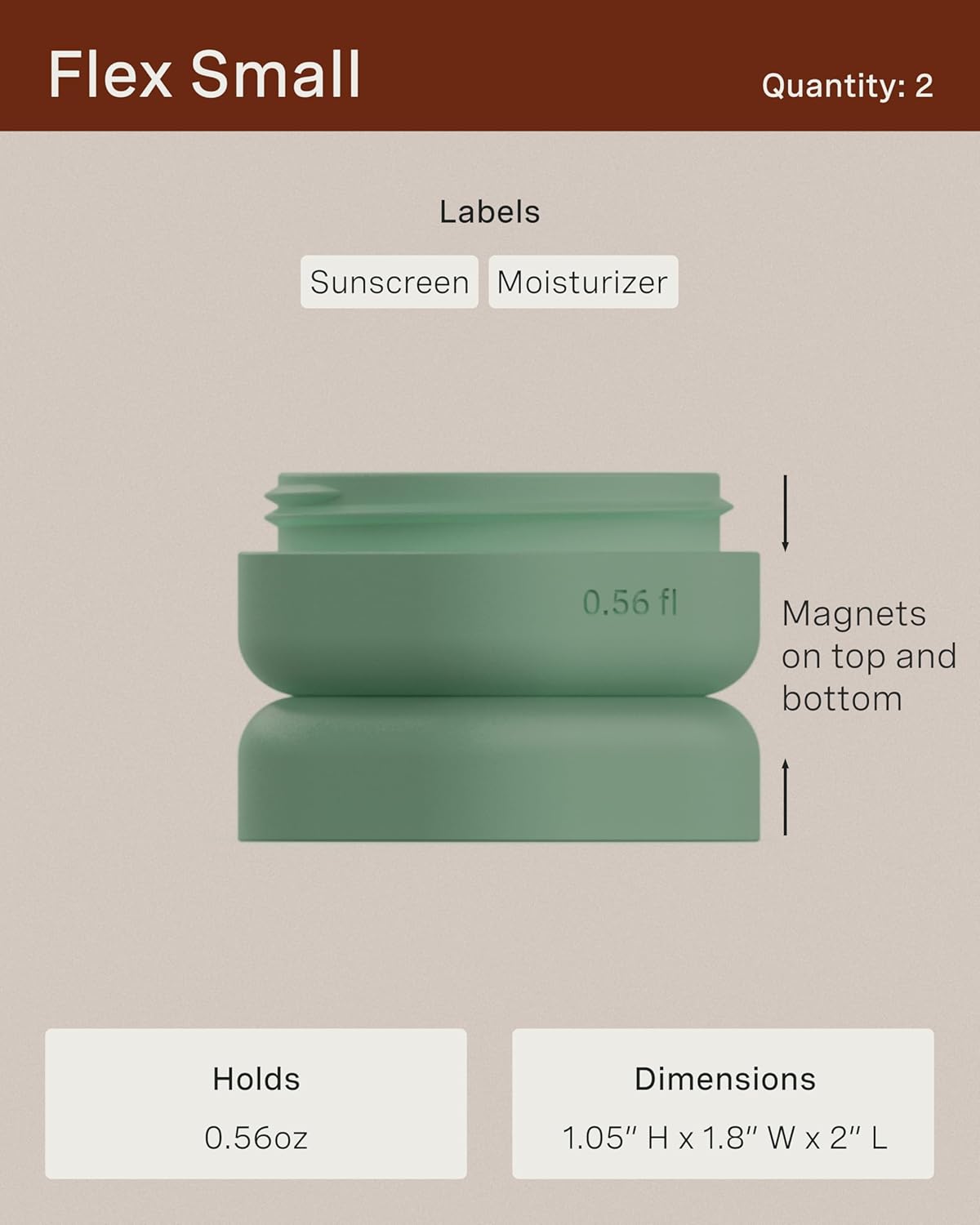 • PATENTED MAGNETIC DESIGN - Designed for seamless storage, our travel capsules feature a magnetic design that connects each container vertically or horizontally. They include magnetic labels that seamlessly swap between The Flex Small, The Flex Medium, and The Flex Large Capsules.