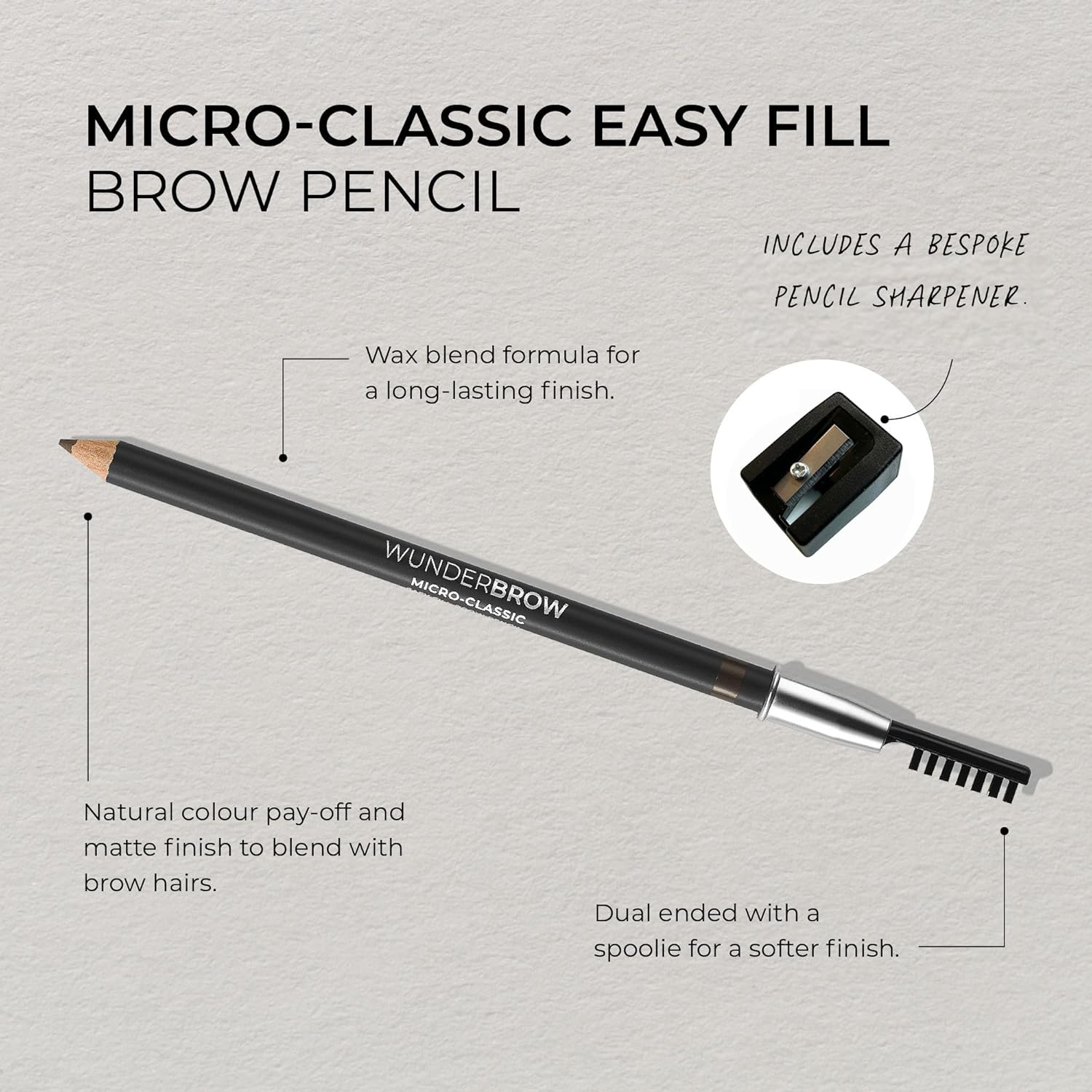 Wunderbrow Micro-Classic Brow Pencil, 2.5mm tip for precision filling, Sharpener Included, Vegan and Cruelty Free (Black/Brown)
