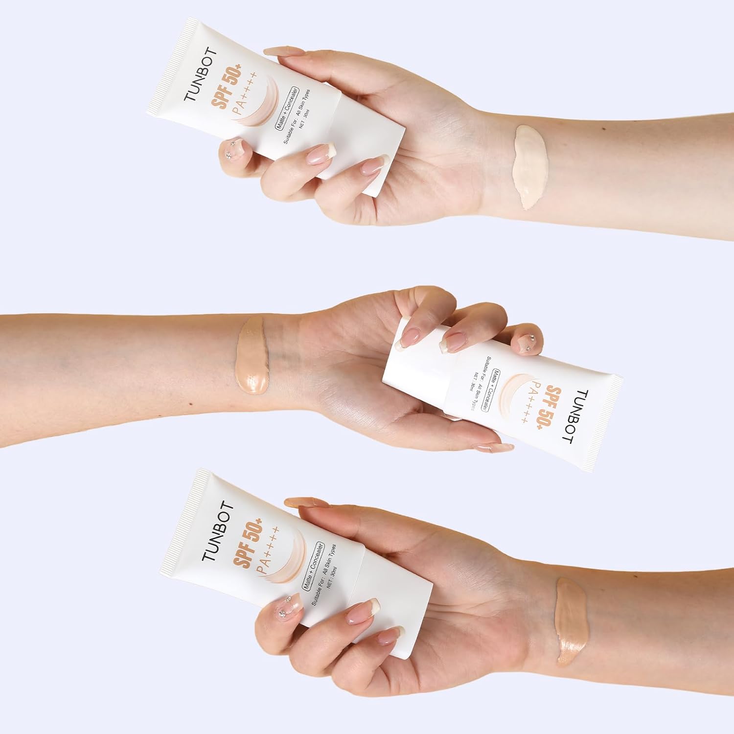 TUNBOT Liquid Makeup Foundation with SPF 50, Makeup to Cover Facial Imperfections, Unscented Foundation for All Skin Types (30ml)