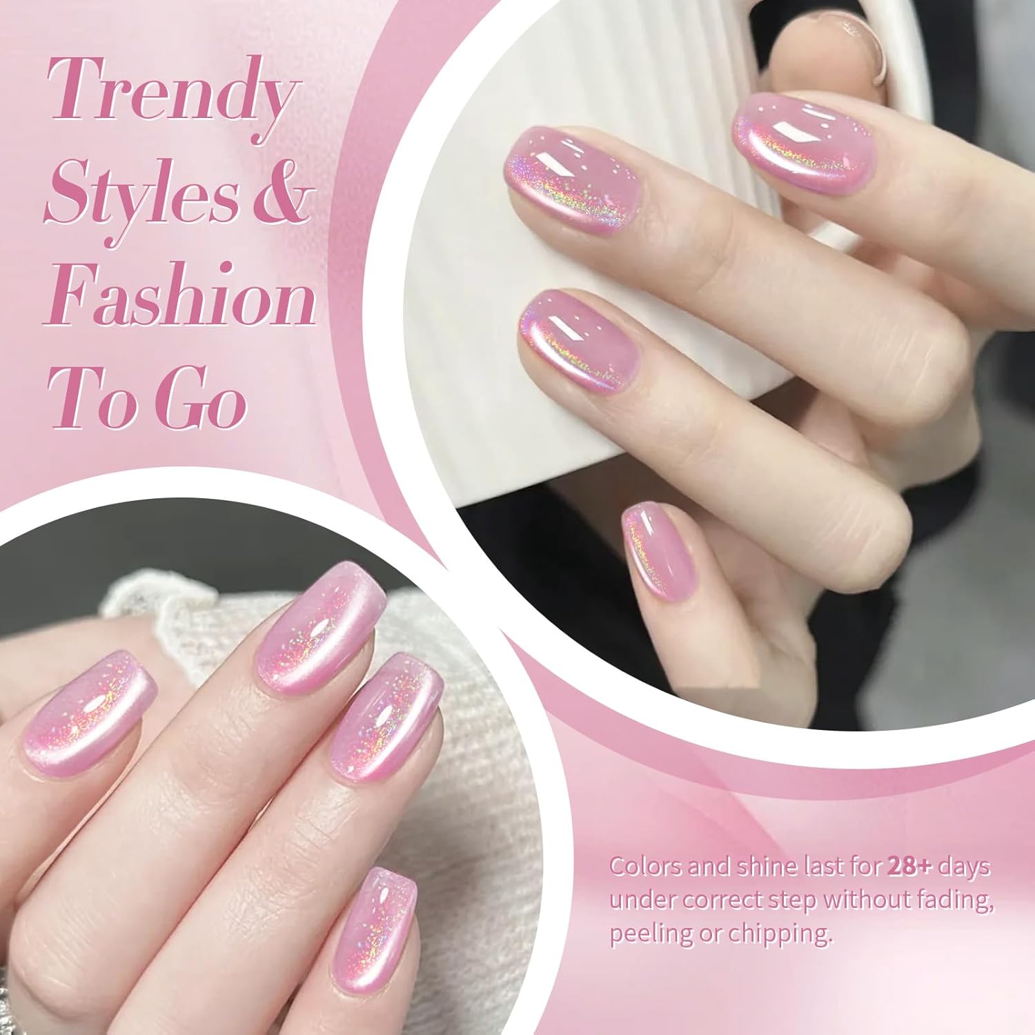 BORN PRETTY Pink Cat Magnetic Eye Gel Nail Polish Rainbow Holographic Moonlight Glass Magnetic Gel Nail Polish 15ML