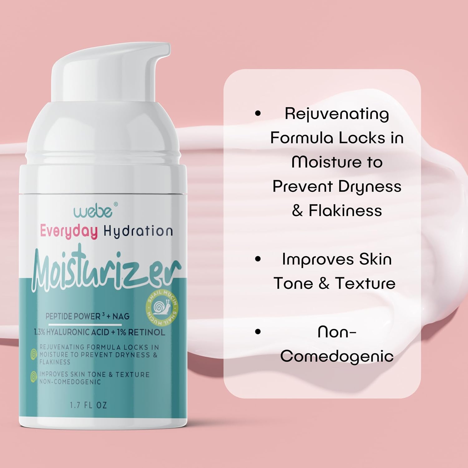 WEBE Hydration Snail Mucin Moisturizer – Hydrating Face Cream with Hyaluronic Acid, Retinol & Peptides for Smoother, Youthful-Looking Skin