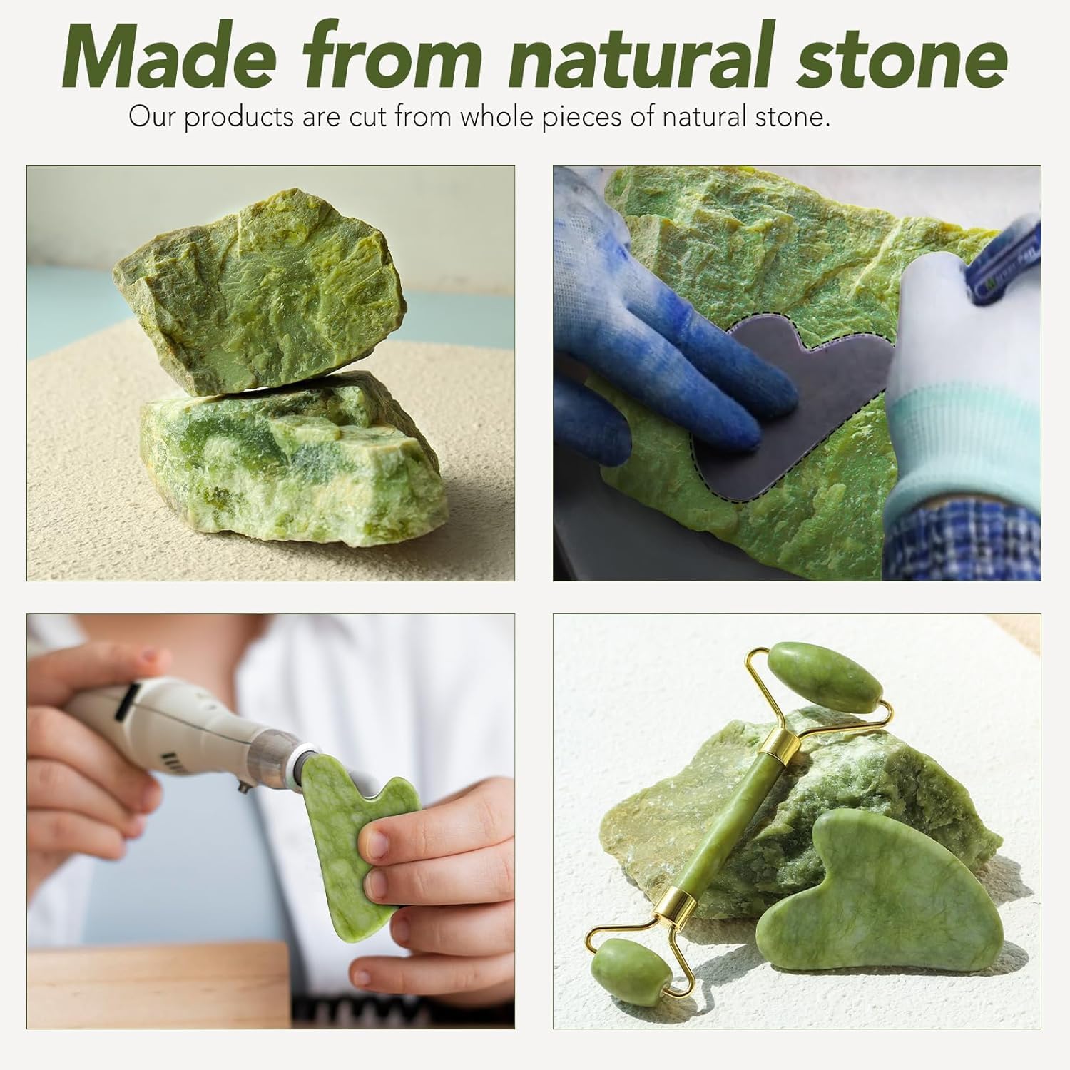 2 Pack – Jade Roller & Gua Sha Facial Tools Set for Face & Body – Face Sculpting, Puffiness & Wrinkle Reducer – Self-Care Beauty Gift for Women & Men