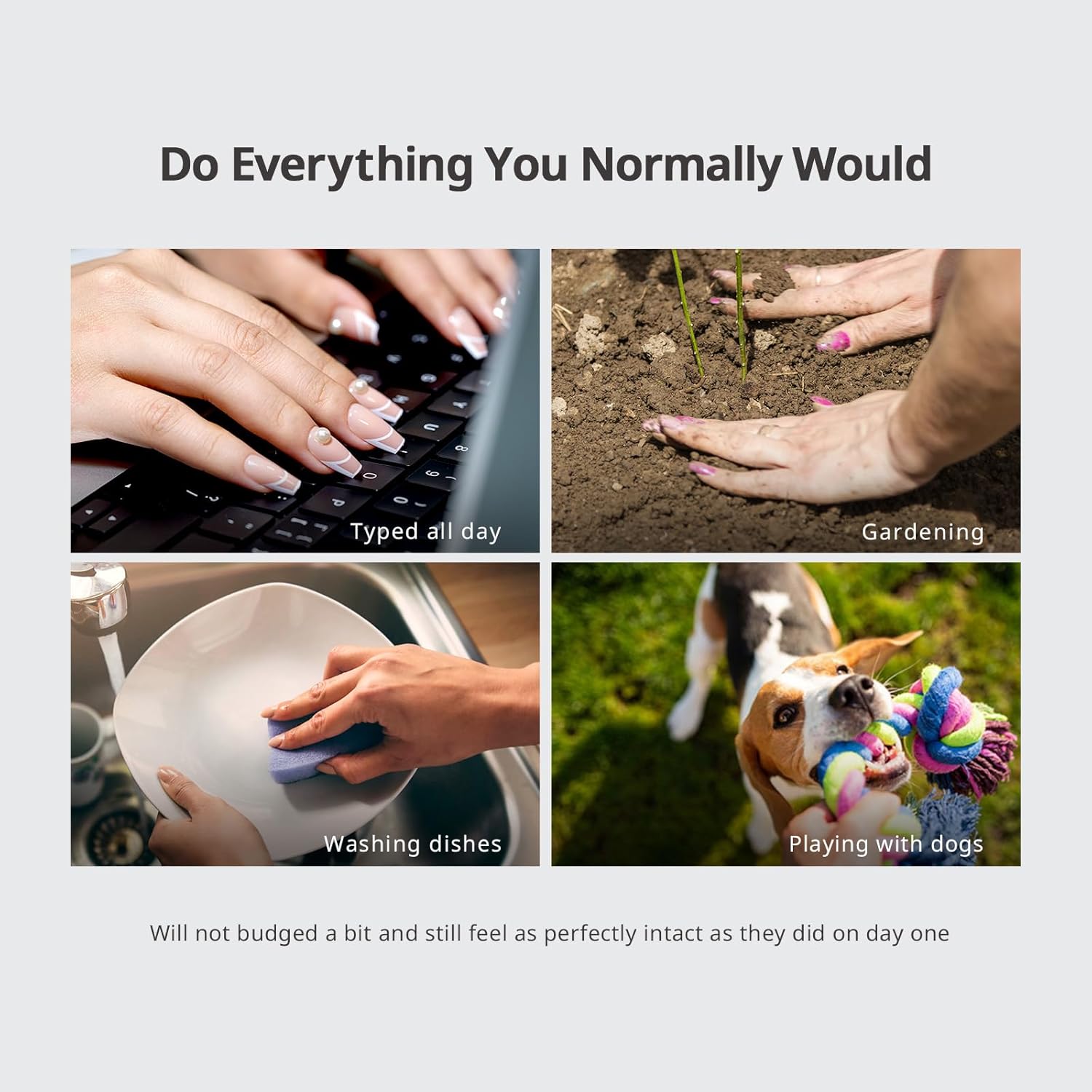 - Live Life Unfiltered: Built tough with builder gel & top coat. Type, garden, scrub, or play with pets β these nails stay chip-free through daily adventures