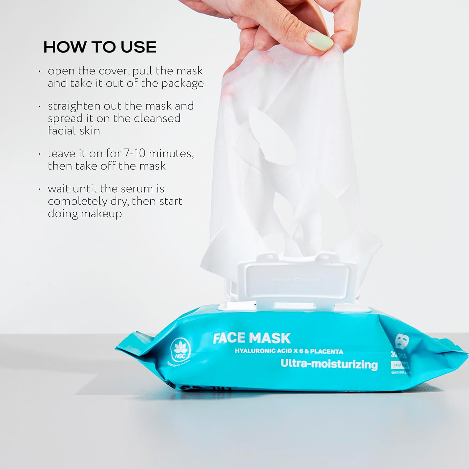 NSC Korean Moisturizing Face Masks with Hyaluronic Acid - 30-Pack Premium Hydrating Sheet Mask Set - Advanced K-Beauty with Shea Butter and Jojoba Oil - Skincare Monthly Supply for All Skin Types