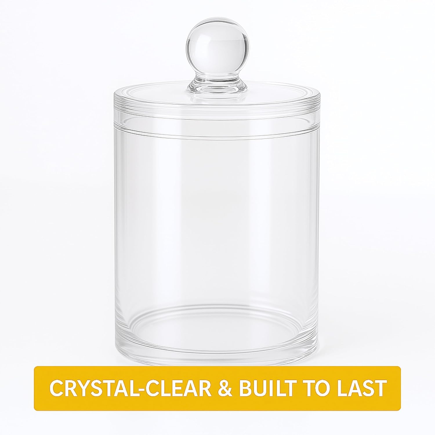 • MORE DROP-RESISTANT THAN GLASS: Acrylic storage containers smooth edges provide a secure grip and it also makes the Apothecary jar with lids more beautiful. qtip cotton ball organizers and storage crystal-clear design bathroom containers with lids enhances visibility and makes it easy to locate items. q tip holder for bathroom are crafted from high-quality, ensuring durability and safety.