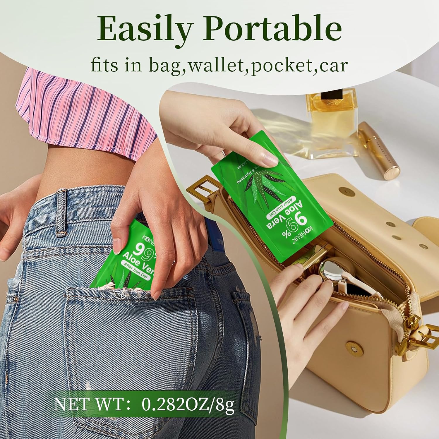 - 【99% Pure Aloe Vera Gel】This set of aloe vera gel has 200 packs,each pack is 0.282oz,each pack of aloe vera gel is individually packaged,which is very suitable for carrying around,when you use these aloe vera gel,you will feel very relaxed and cool,it quickly absorbed,and free of any sticky residue,leaving your skin moisturized and smooth