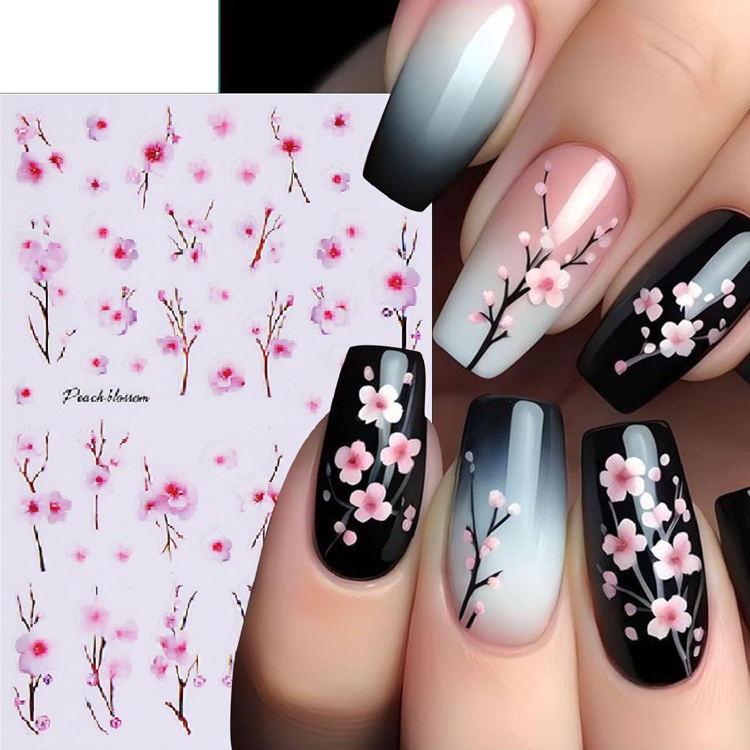 - Easy to Use:Peach blossom nail stickers decal are self-adhesive,completing fashion-cool nail art design in just a few seconds. If you want to keep it for a long time, you need to apply nail polish on the surface for reinforcement
