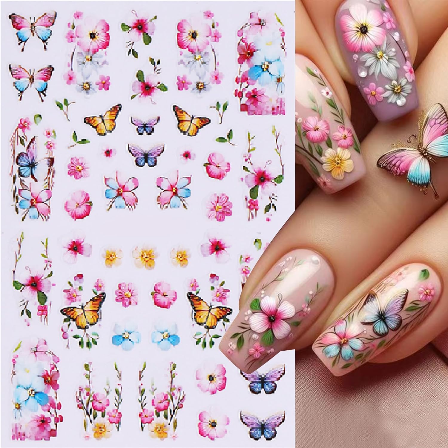- French Butterfly Self-Adhesive Design: 3D cute nail decals for nail art design is simple and quick to use, nail stickers work great on bare nails, they will stay on for a long time and will not peel off your nails, enjoy the feeling of nail art