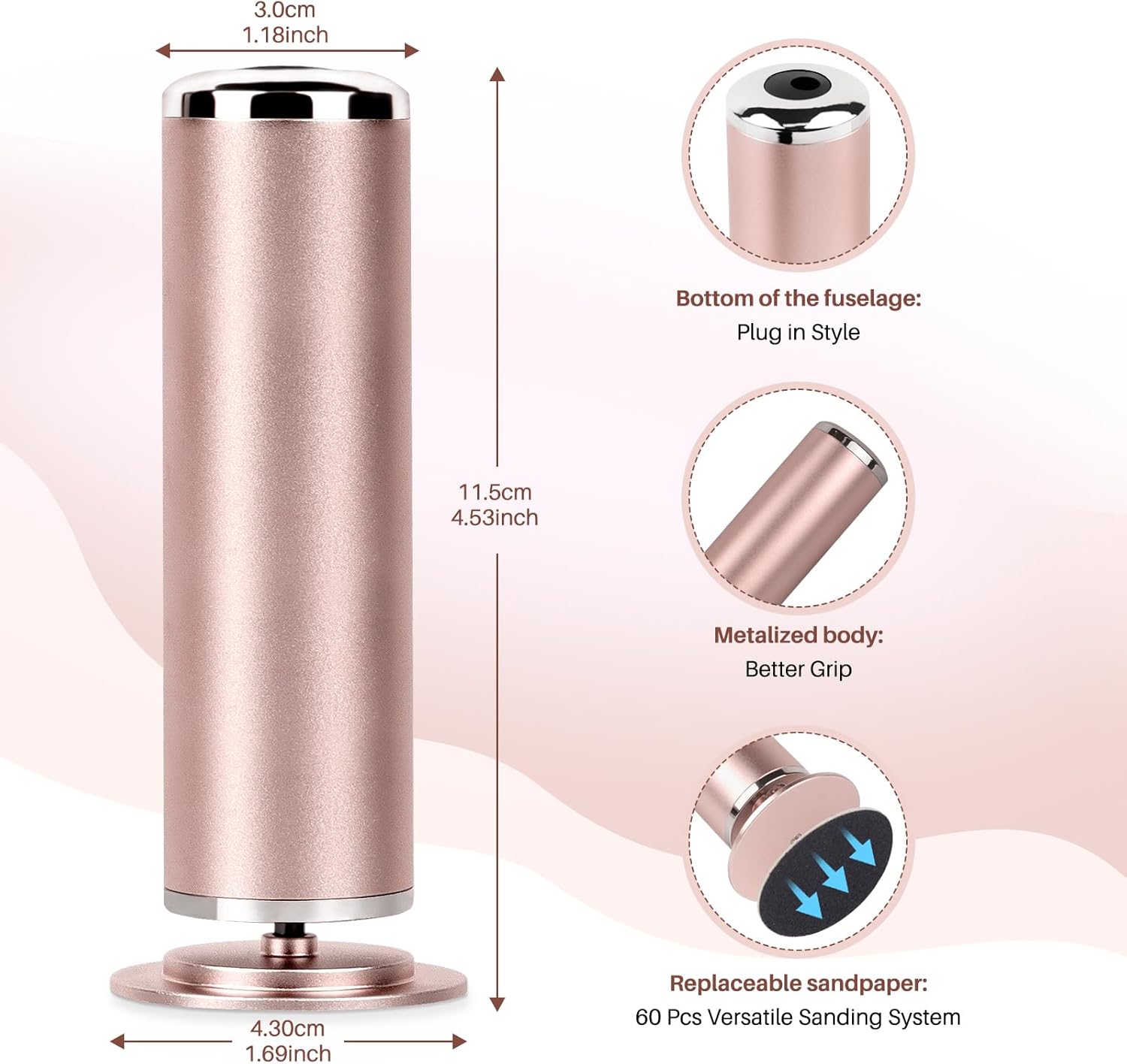 - 【Profesional Pedicure Tool For Feel】The motor of our foot callus remover is made from high-density material,Equipped with High-Precision Motor (0-600 RPM max) ,This allows for rapid acceleration and instant deceleration, Plug-in power is designed to provide strong, continuous power that not only eliminates the need to recharge batteries, but also saves time and effort compared to manual foot file.